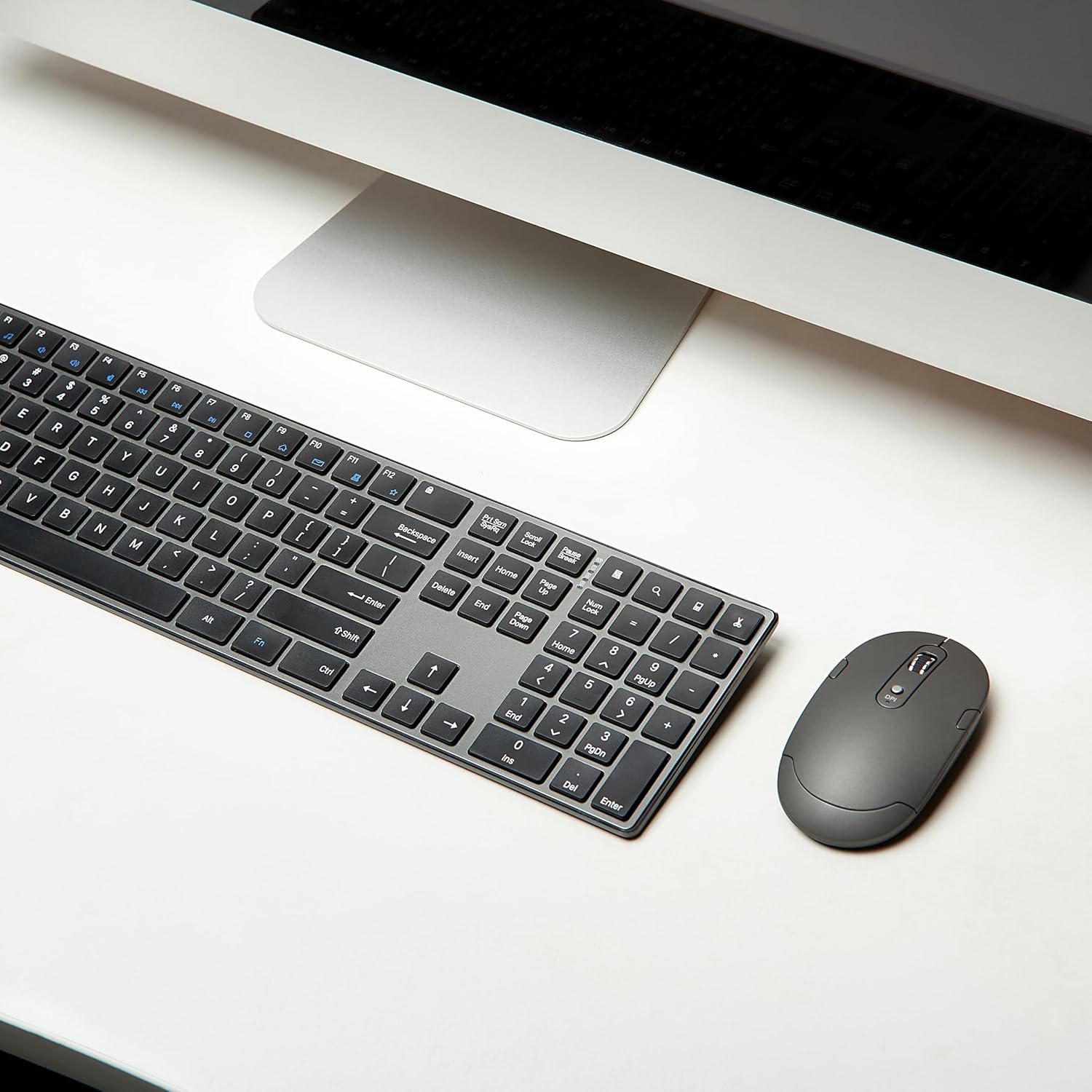 KEYBOARD & MOUSE BUNDLE: Enjoy a convenient wireless keyboard and mouse set with a full layout and ultra slim design, perfect for a sleek workspace. Rechargeable features offer cost-effective use.