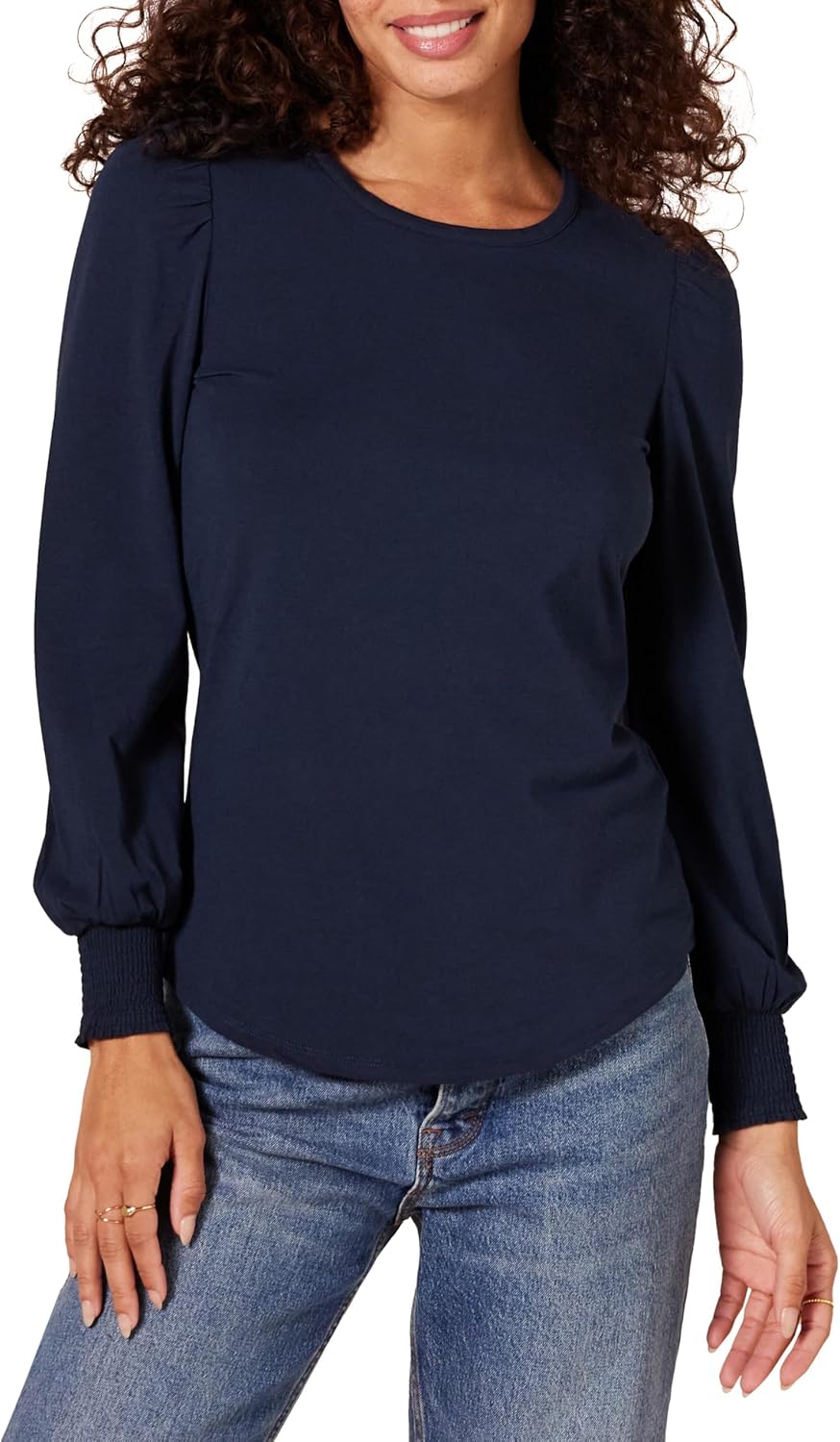 Amazon Essentials Women’s Long-Sleeve Crewneck Smocked Cuff T-Shirt