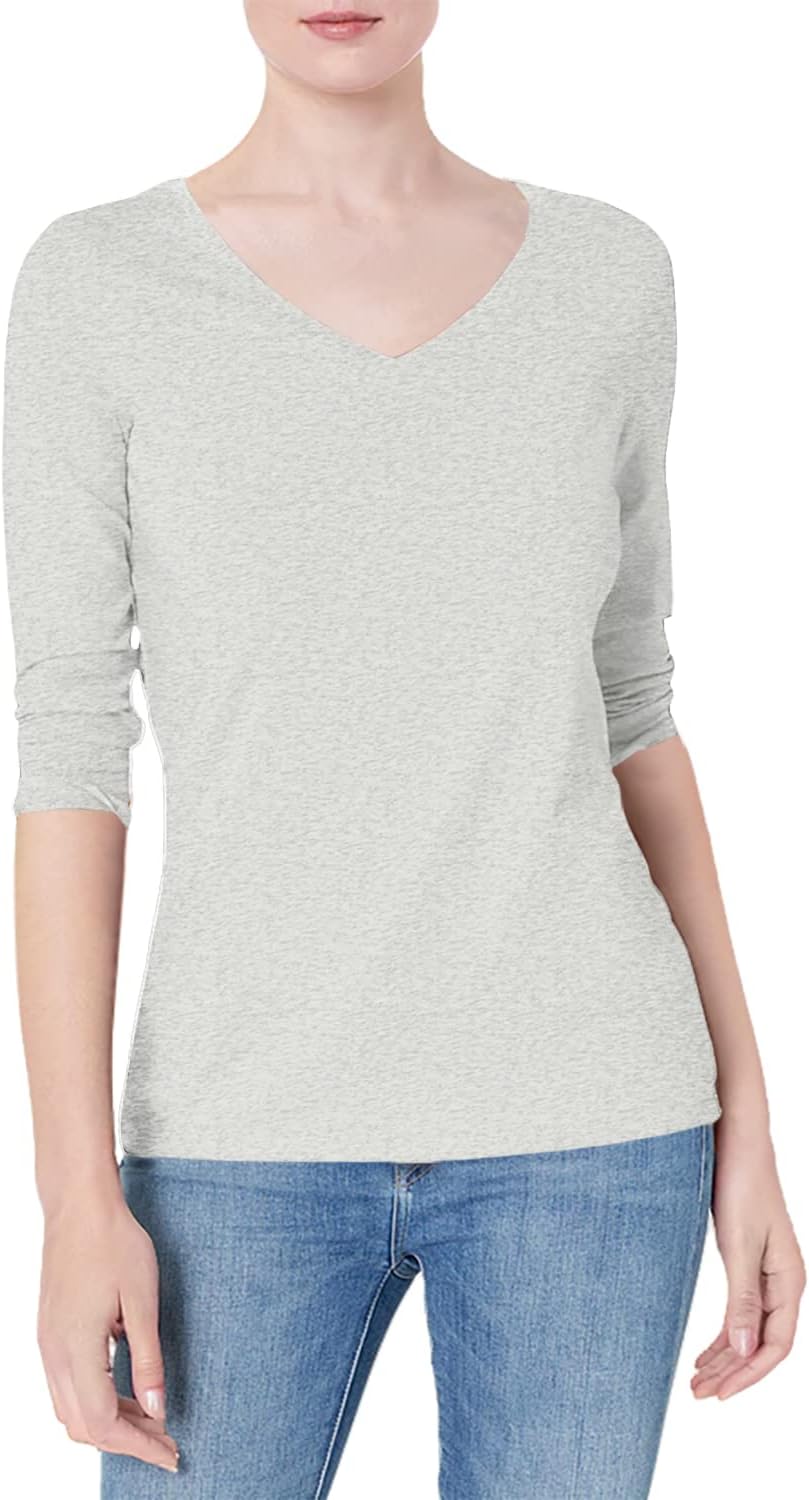 Amazon Essentials Womens Regular-Fit 3/4 Sleeve V-Neck T-Shirt (Available in Plus Size)