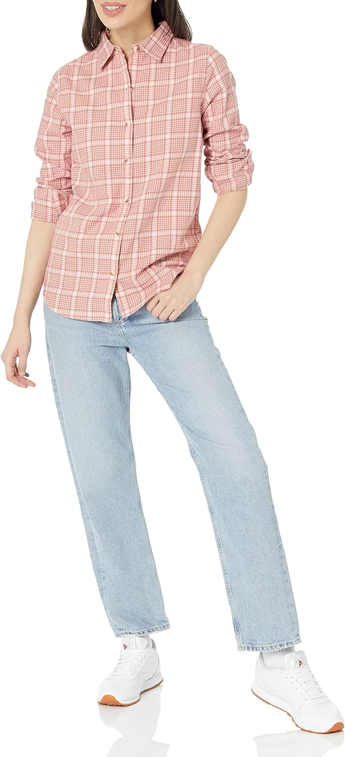 Amazon Essentials Womens Regular-Fit Long-Sleeve Lightweight Plaid Flannel Shirt