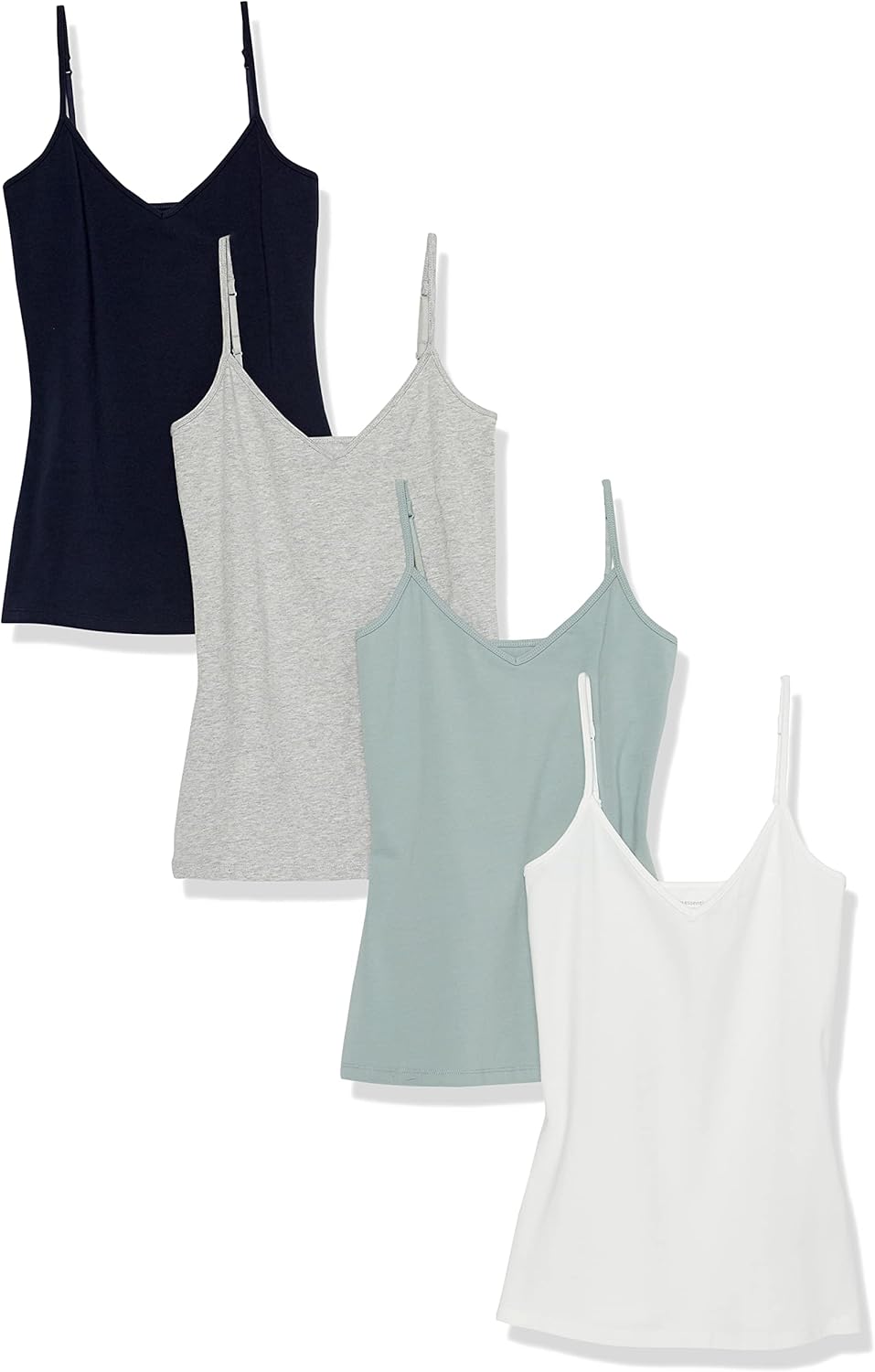 Amazon Essentials Women’s Slim-Fit Knit V-Neck Layering Cami (Available in Plus Size), Pack of 4