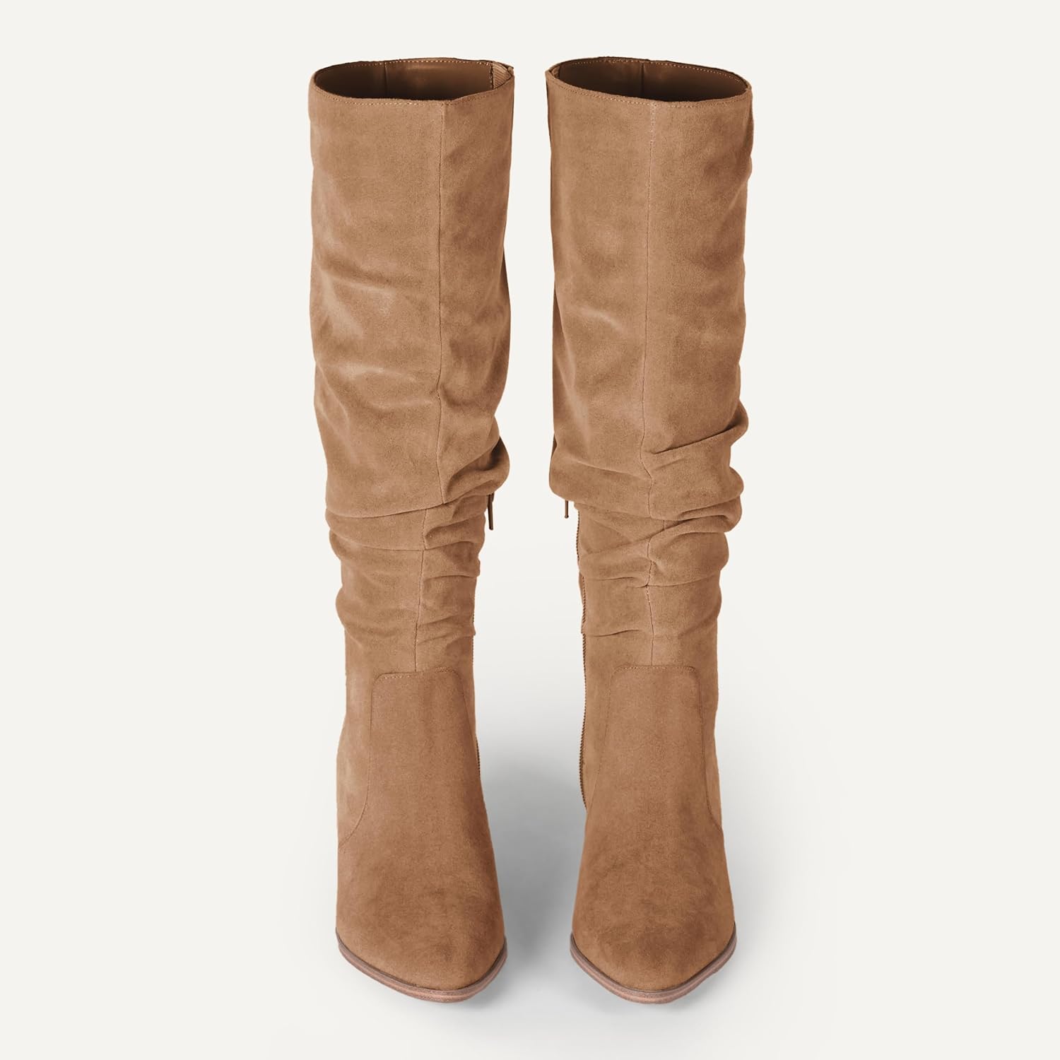 Customers find these boots comfortable, with feet not hurting at all, and appreciate their reliable sizing that’s not too tight around the calf. The boots receive positive feedback for their style, being nice when dressing up, and customers consider them fantastic and decent for the price. The color accuracy and material quality receive mixed reviews – while some find the color perfect, others say it’s not the right shade, and while some describe the material as super soft, others compare it to cheap felt.