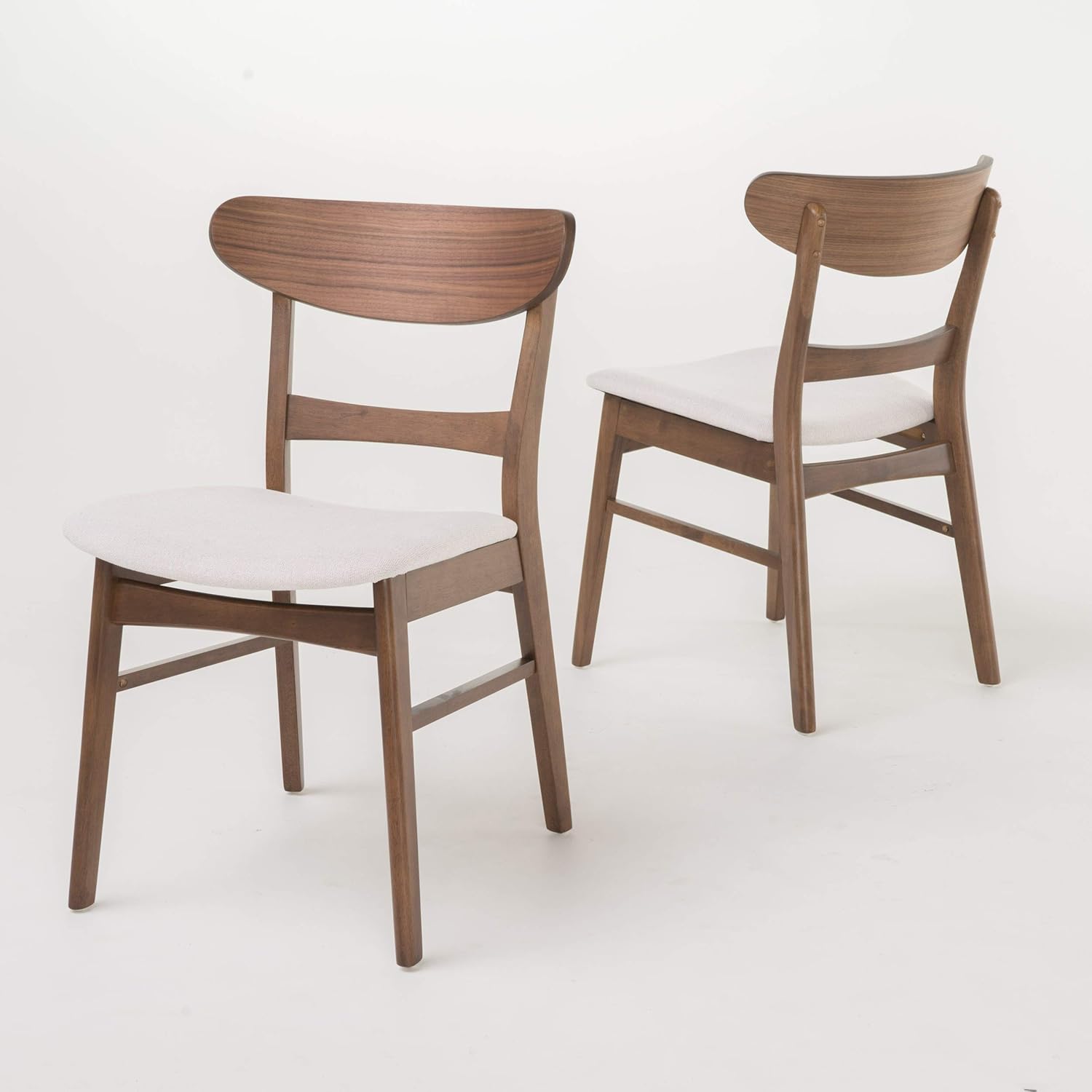 Christopher Knight Home Idalia Curved Leg Rectangular Dining Set, 5-Pcs Set, Natural Walnut / Light Beige