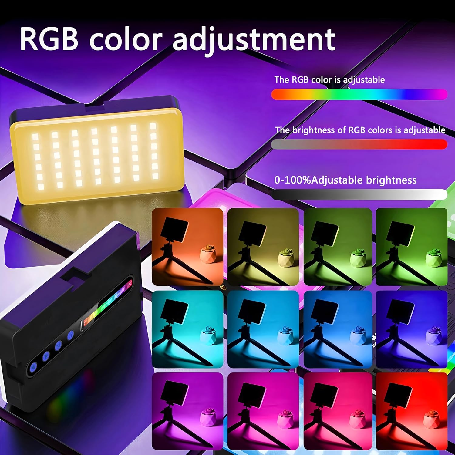 This portable RGB fill light features 138 high-quality LED beads (96 tri-color and 42 RGB) with a CRI of Ra≥95, providing soft, natural, and vibrant lighting for all your photos and videos. The high color accuracy ensures that your images and footage are true to life with excellent color rendering.It offers versatile adjustability with multiple modes including RGB full color, adjustable cool-to-warm white light (2700K-6500K), and various special effects. You can easily adjust brightness and color temperature using the built-in controls to suit different shooting environments and creative needs.Powered by a 2000mAh rechargeable lithium battery, it can run for up to 16 hours on low brightness, making it perfect for outdoor shoots or mobile use. Its compact design makes it lightweight and easy to carry, ideal for creators on the go.With 12 dynamic lighting effects, this light unlocks a range of creative possibilities, allowing you to customize your lighting setup and elevate your photography, videography, live streams, or content creation. It’s a reliable, high-performance lighting solution for professional photographers, vloggers, and social media content creators.