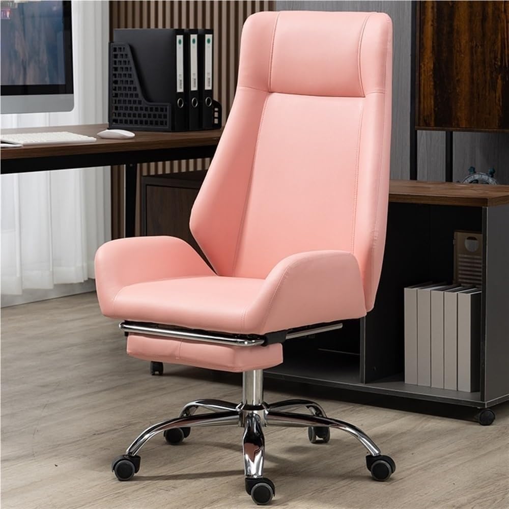 Commercial Grade Retractable Footrest High Back Executive Office Chair Leather Reclining Desk Chair Ergonomic Fixed Armrests Computer Chair with Footrest for Home Office Conference Room(Pink)