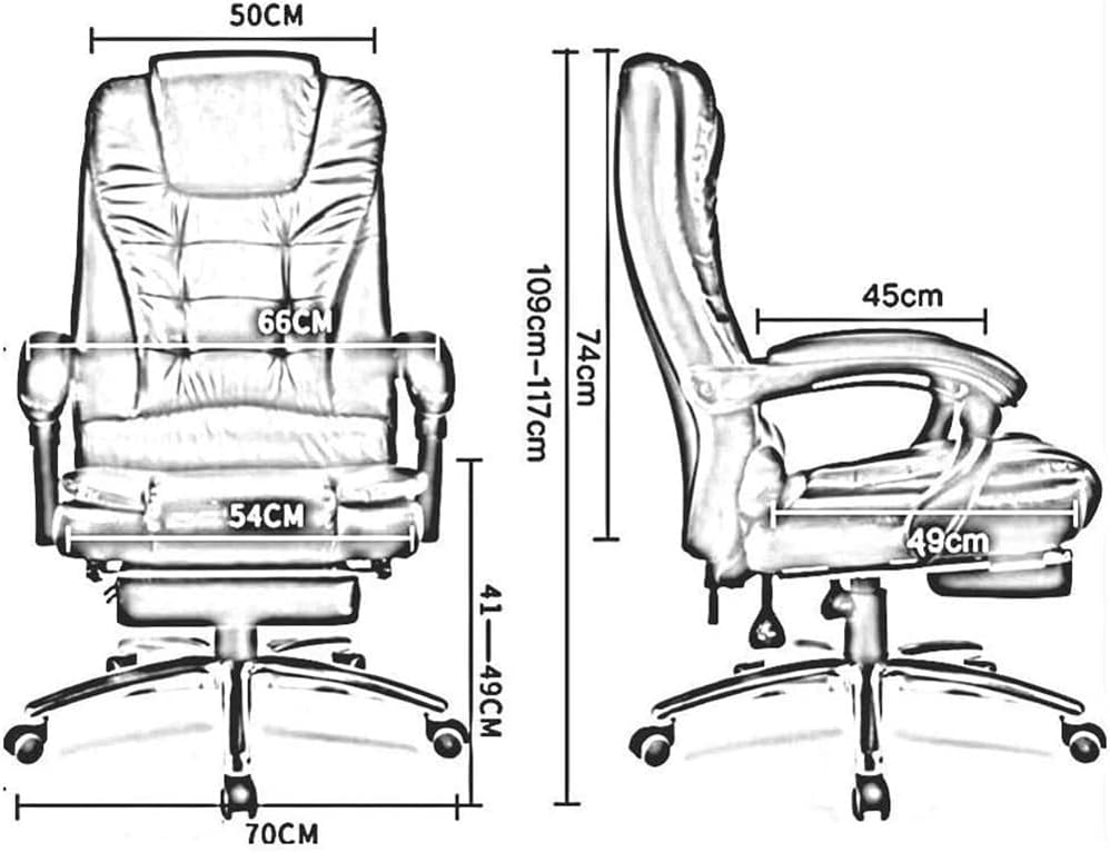 Computer Chair with Footrest for Long Hours Reclining Leather Swivel Chair with Adjustable Height, Telescopic Footrest & Lumbar Support for Home Office