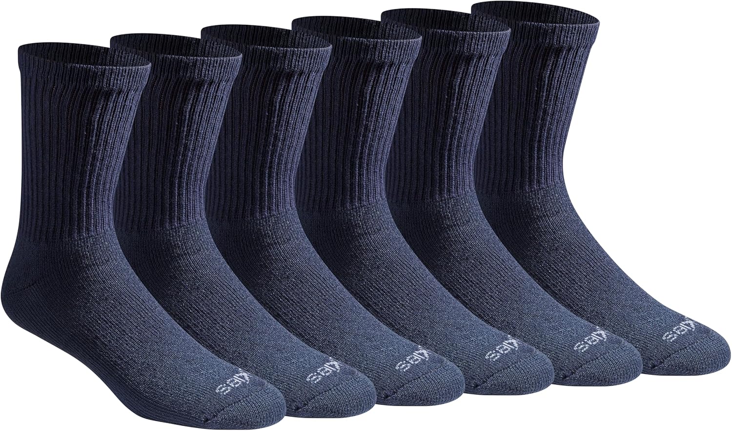 ‘ve finally found the perfect sock for my size 14 wide feet! I’ve always struggled to find quality socks that can accommodate my shoe size without sacrificing comfort and durability. After years of settling for heavy-duty Dickies XL socks from the supermarket, discovering the Dickies Men’s Dri-Tech Mid-Crew Comfort Length Moisture Control Socks online was a game-changer. The 6-pack has been a staple in my drawer—I’ve purchased it at least five times now!These socks are incredibly soft, yet built to last. They handle everyday wear with ease, and I’ve only ever had a single sock develop a hole—usually, I lose them before they can get worn out! Whether I’m hiking, working, or just going about my day, these socks offer excellent moisture control and cushioning that really make a difference.While I wish they made an ankle version in XL for summer use, I’ve found a workaround by folding them down under my heel. This not only keeps my feet comfortable but also adds an extra layer of cushioning that works well in every season. Needless to say, if you need a reliable, comfortable, and durable sock for any activity, you can’t go wrong with these Dickies Dri-Tech socks. They’ve truly exceeded my expectations in every way!