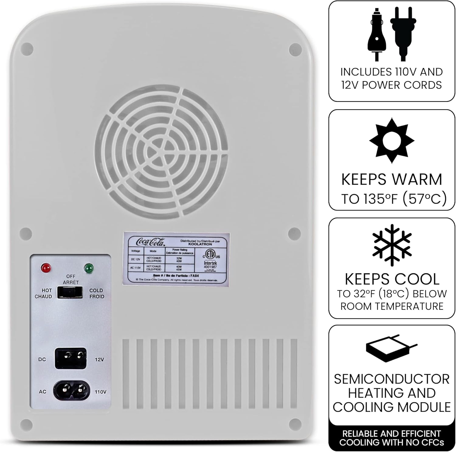 Diet Coke Mini Fridge – Refrigerator for Bedroom Office, Portable Table Top Beverage Cooler, 12V 110V Refrigerador For Drinks, Soda, Wine, Use In Car, Dorm, Outdoor, Patio, 6 Can