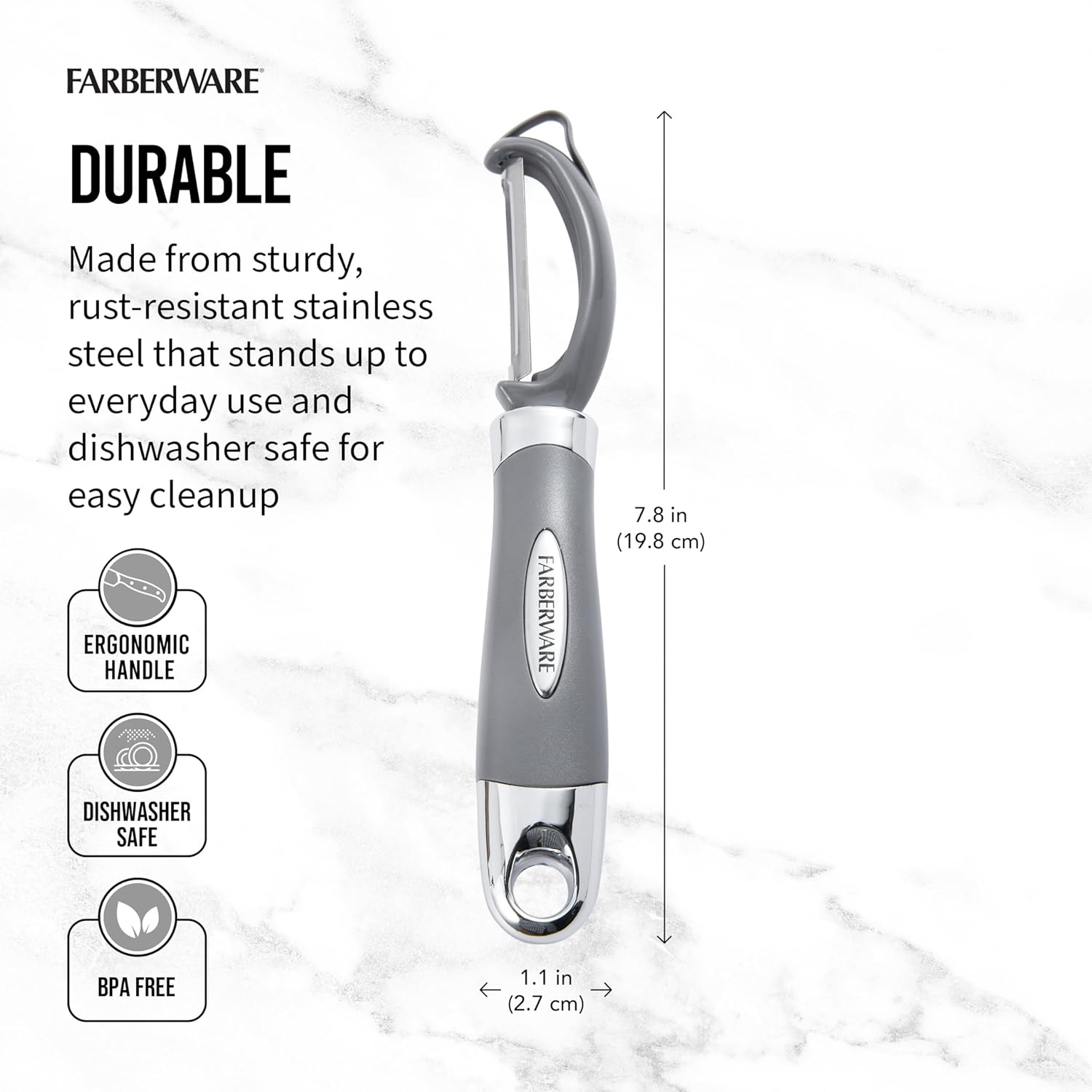 Farberware Euro Peeler, a Kitchen Essential for Quick and Easy Peeling of Produce, Chocolate, Cheeses and More, Features Hang-Hole for Easy Storage, Dishwasher Safe, Jewel Grey