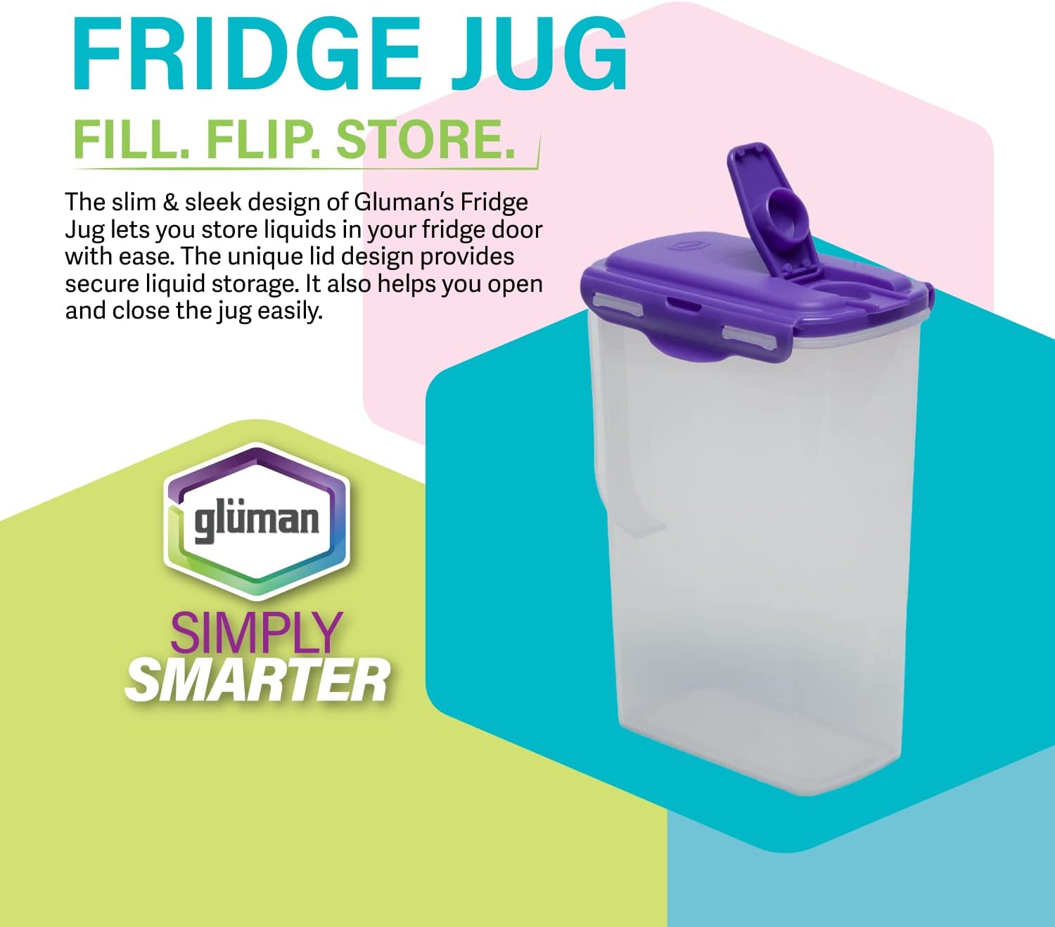 The Gluman Fridge Jug has a wide mouth for easy cleaning and extended use. Cap with an ergonomic design. Fits on the side of refrigerator doors and has a comfortable locking lid. The Gluman fridge jug is made of one of the safest materials available. All of our Fridge Jugs are Phthalate and BPA free, making them a healthier choice for cold and hot beverages.
