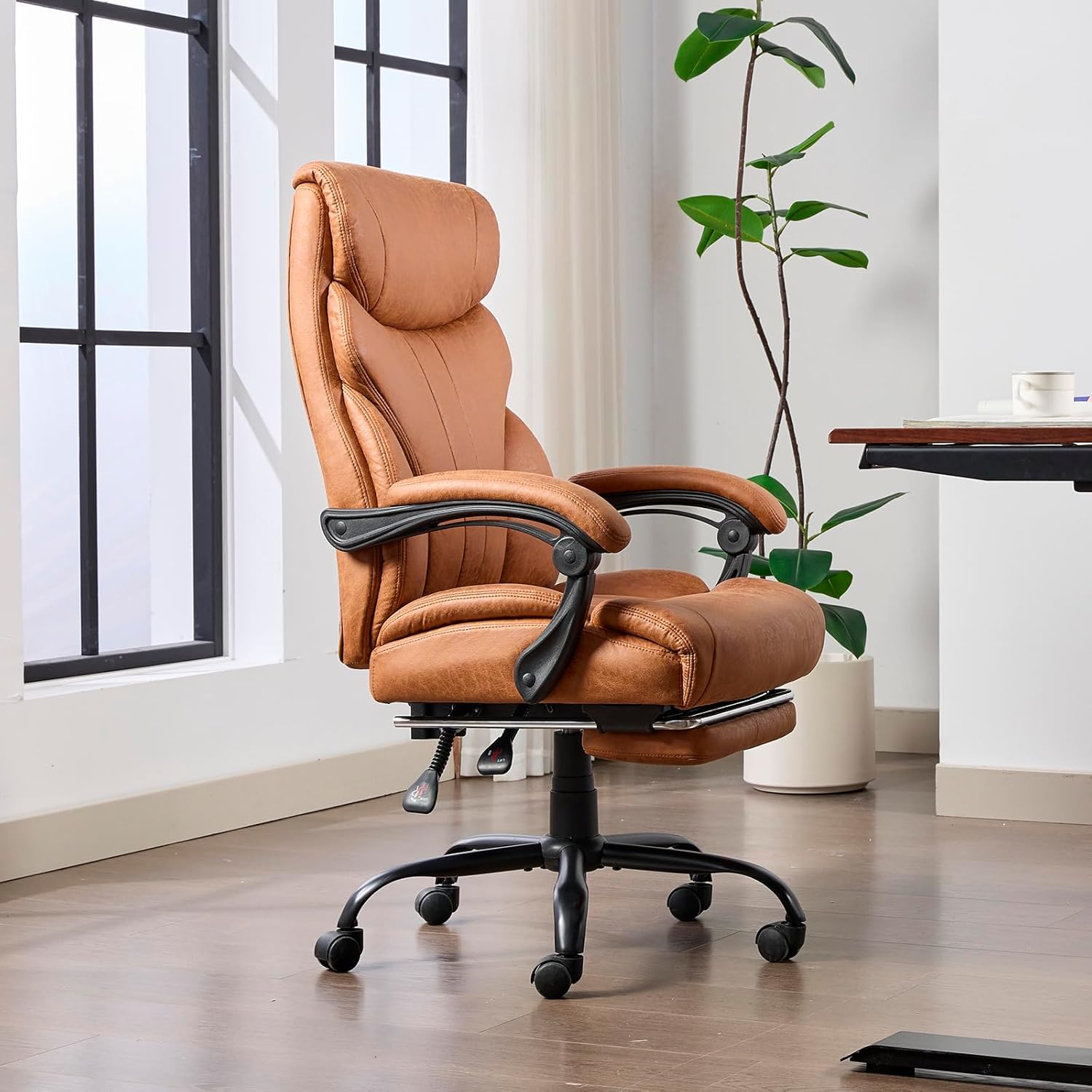 GarveeHome Ergonomic Office Chair, 500 LBS Big & Tall Home Office Chair, PU Leather Computer Desk Chairs, Wide Seat Executive Office Chair With High Back and Footrest, Rolling Swivel Task Chair, Brown