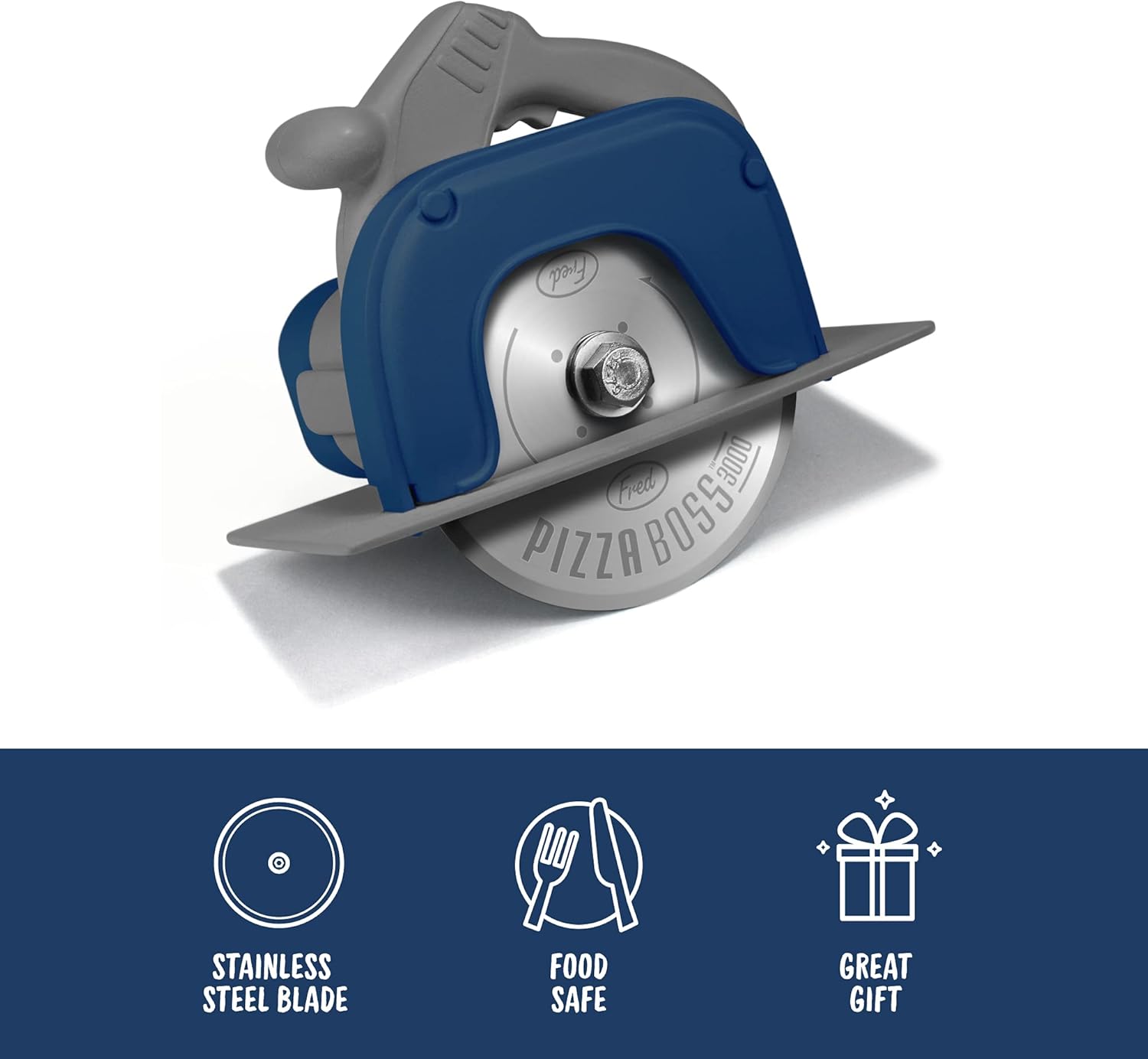 Genuine Fred PIZZA BOSS 3000, Circular Saw Stainless Steel Pizza Wheel, Great Gift for Guys and Pizza Lovers, Easy to Clean with Removable Shield – White Elephant Gift – Fun Kitchen Gadget