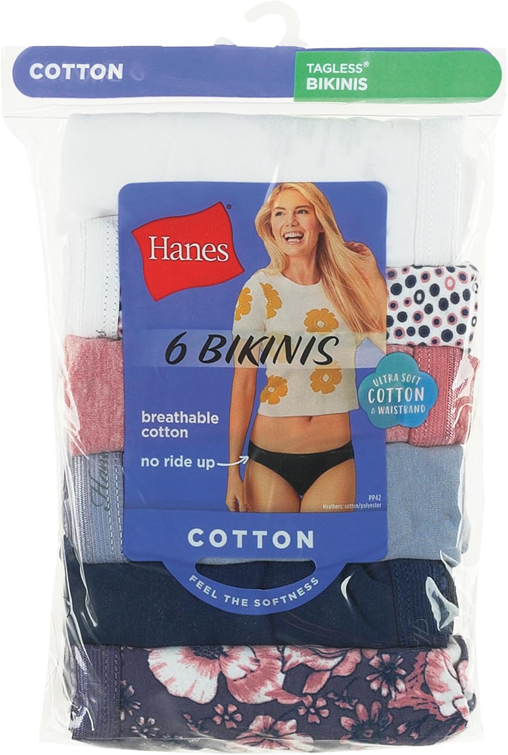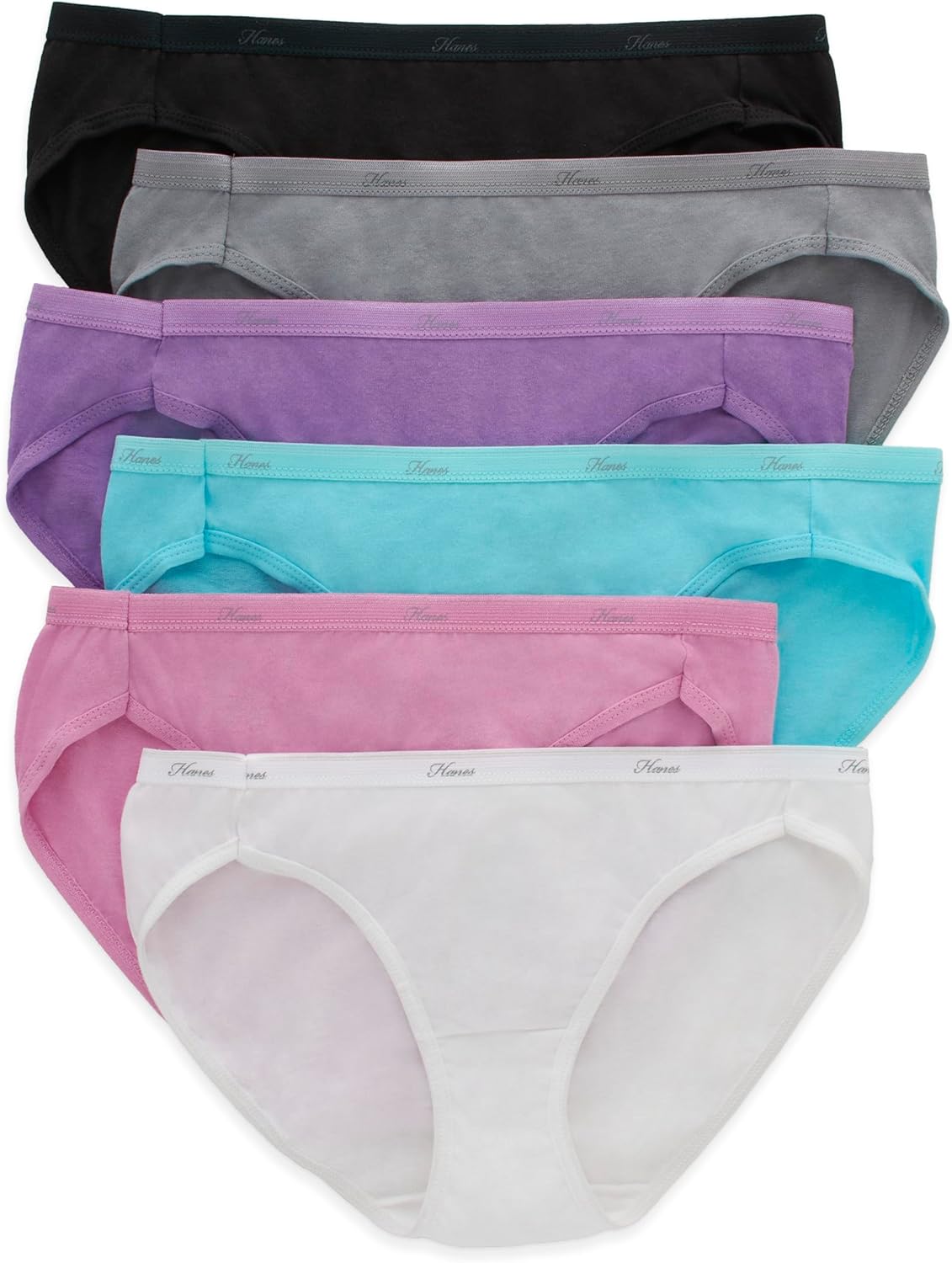 Hanes Women’s Bikini Underwear Pack, Moisture-wicking Cotton Bikini Panties, 6-pack (Colors May Vary)