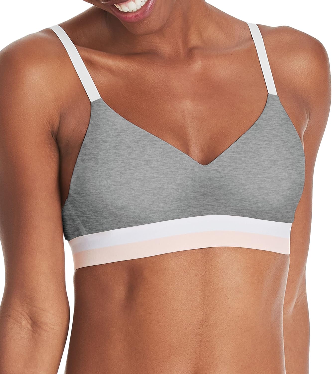 Support without the bulk, Hanes® Natural Lift wire-free bra offers both comfort and sporty style. Crafted with X-Temp™ technology, the smooth design adapts to your temperature for a cool-feel. The Comfort Flex Fit® bra provides an ultra-stretchy fabric that molds to your shape for the perfect custom fit. Move freely and easily, thanks to its stay-put comfort band and stretch design. Available in an array of colors, Hanes® wire-free bra is finished with a wide striped band for added style.