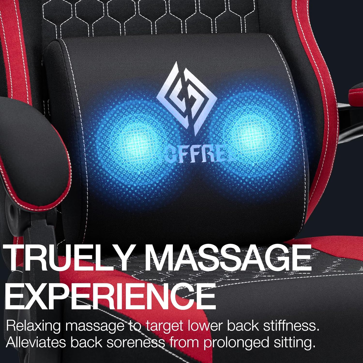 【BREATHABLE FABRIC CHAIR】Highly breathable & comfortable cloth fabric material-sitting in a chair will not feel stuffy. Computer gaming chair with massage lumbar pillow that made with memory cotton, this game chair designed for ergonomic curve waist and massage powered by USB port which helps a lot with easing back pain.