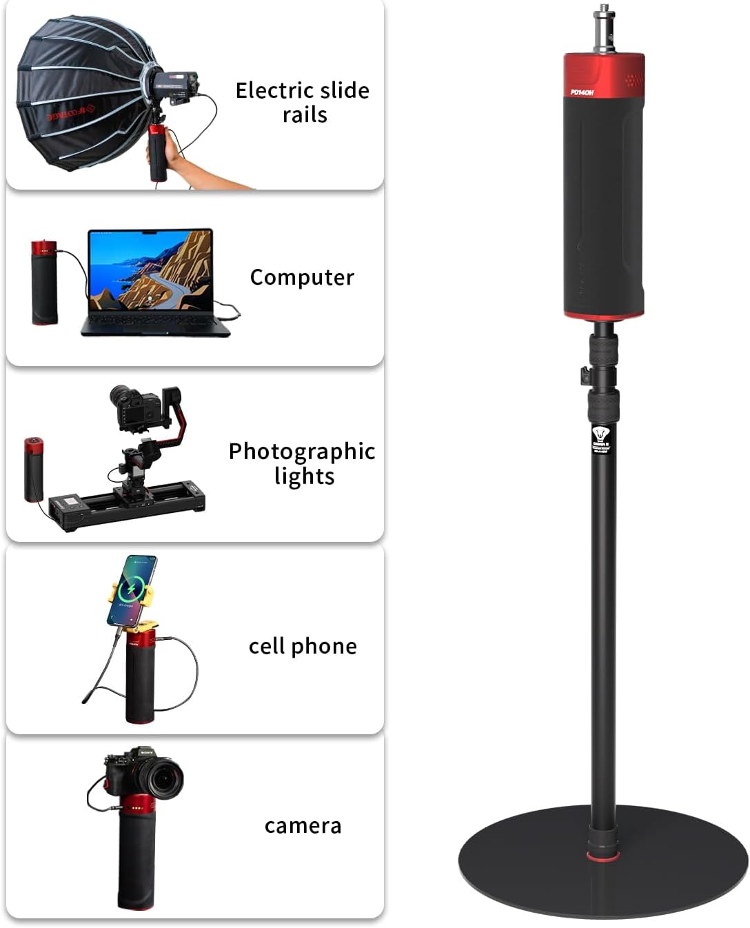 Well built, good quality and stability for mounting my Elgato teleprompter. The biggest plus is how short this stand is. As far as I could tell, it’s the only round base stand at this lower height. I bought significantly less expensive brand that had great stability and build quality and even came with the ball mount head. Its issue is that it was about 4–5 inches too tall. My only complaint with this Conta stand is that it was significantly more expensive and not as great of value for the money they are charging.