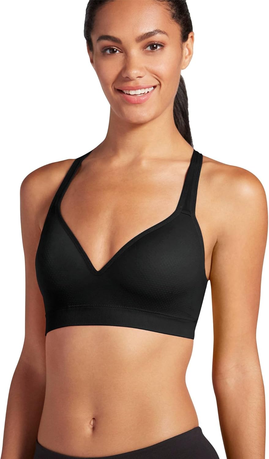 Jockey Women’s Activewear Mid Impact Molded Cup Seamless Sports Bra, Black, XL