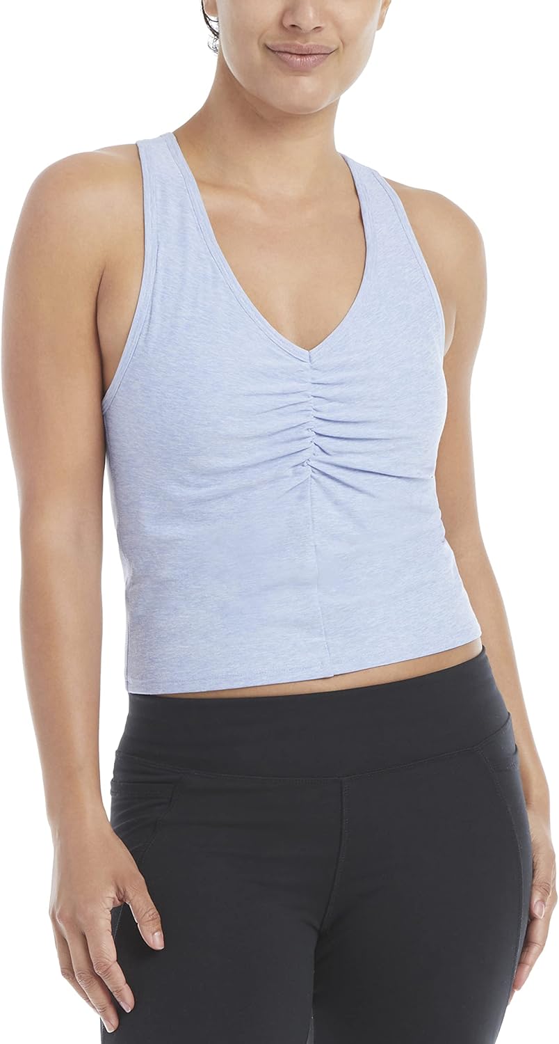 This Jockey Active Tank helps keep you looking and feeling good. Featuring lightweight, breathable, moisture-wicking fabric in a stylish design with racerback details. Featuring a flattering V-Neckline with ruching details and an inner bra that has removable cups. This style comes in a variety of different prints.