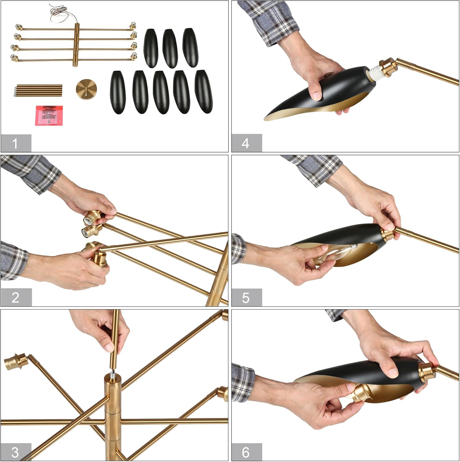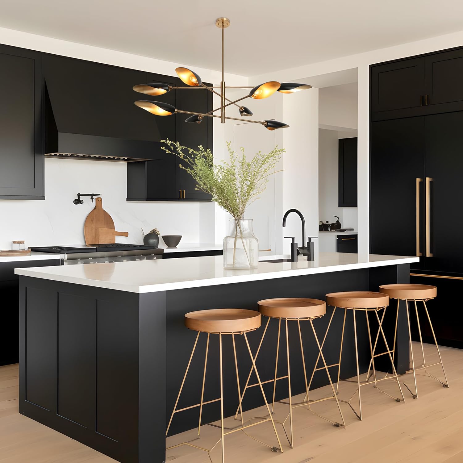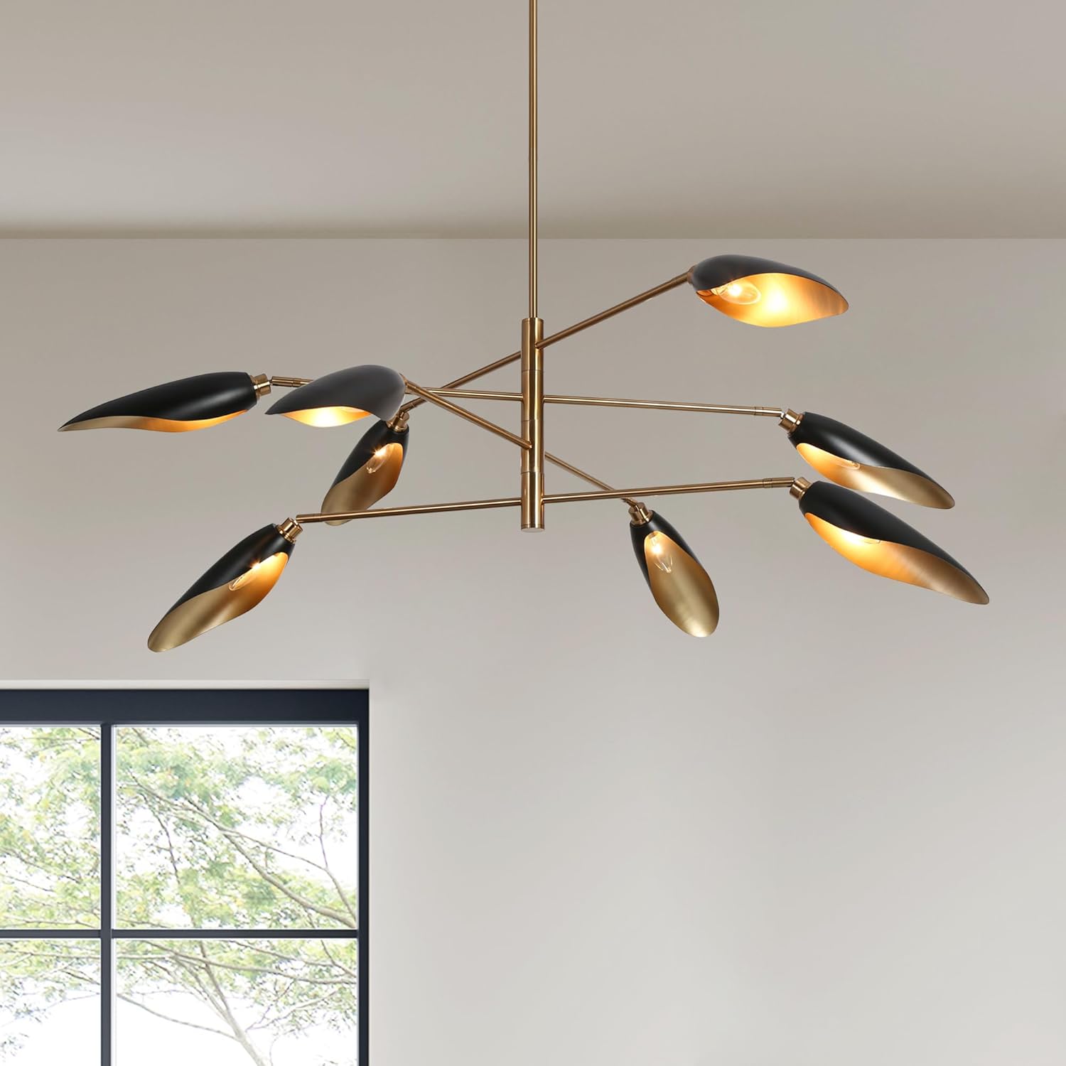 Chic Design with a Modern Twist: This stunning 8-light sputnik chandelier is a perfect blend of modern and retro styles. With a sleek matte black finish, electroplated brass accents, and a light gold interior, it creates a unique and luxurious ambiance. The adjustable light heads allow you to customize the lighting direction, making it a versatile centerpiece. Ideal for those seeking a mid-century modern chandelier that exudes sophistication, this chandelier adds a touch of class to any room.