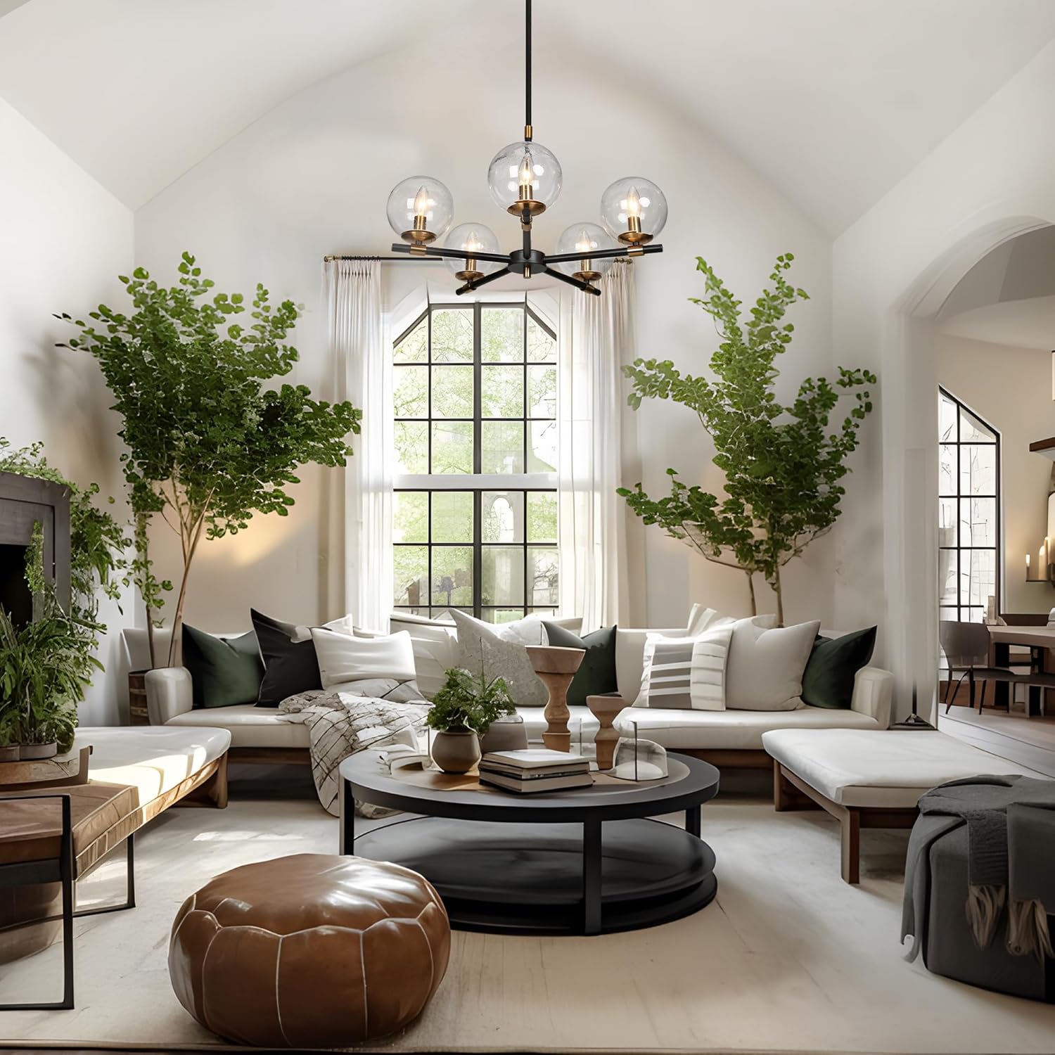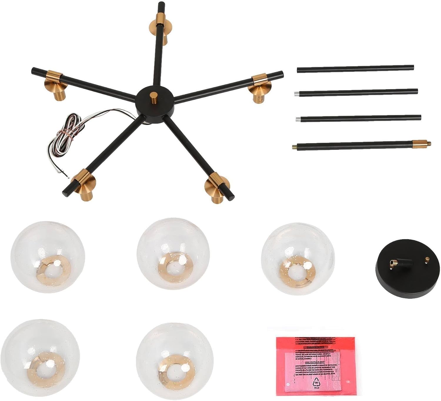 Modern & Stylish Design: This 5-light chandelier features a stunning design with sleek matte black and electroplated copper finishes, combined with five elegant seeded glass globes. Its contemporary style makes it a perfect addition to modern and minimalist interiors, adding a sophisticated touch to any room.