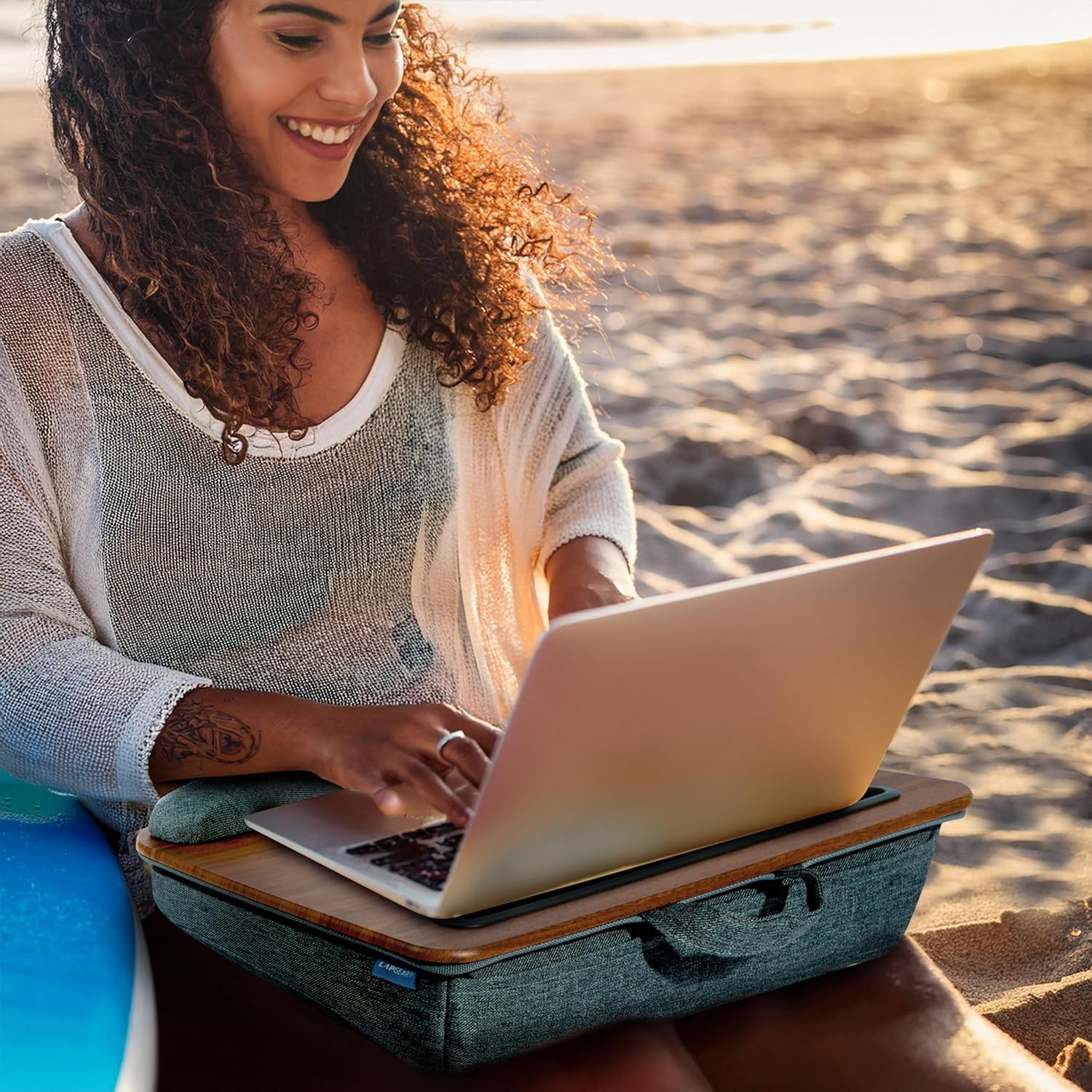 Conforms to You: The microbead-filled pillow cushion adapts to your lap, offering superior comfort and stability on the go.