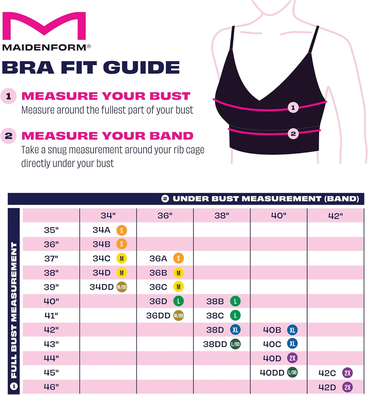 I got two (evening blush and black) Maidenform bras purchased from Amazon. I have another one (the salmon colour) purchased from a different vendor, so I knew they fit me so well!Great support for a wireless bra, comfortable, lovely look, and, I can say even sexy!Lovet it!Today, September 10 I got another black one; it fit perfectly! Again, there is great support for a wireless bra; I usually wear a C-38, so the Maidenform XL is the right size and fit. Now I am set for a while.