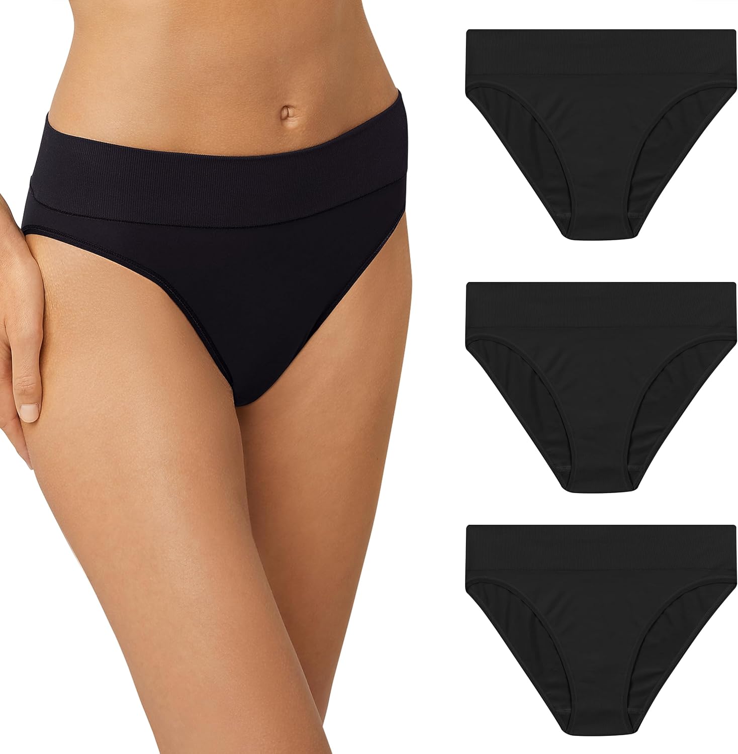 Maidenform Women’s M Underwear, Seamless Hi-Cut Bikini Panties, High-Leg Underwear for Women, 3-Pack