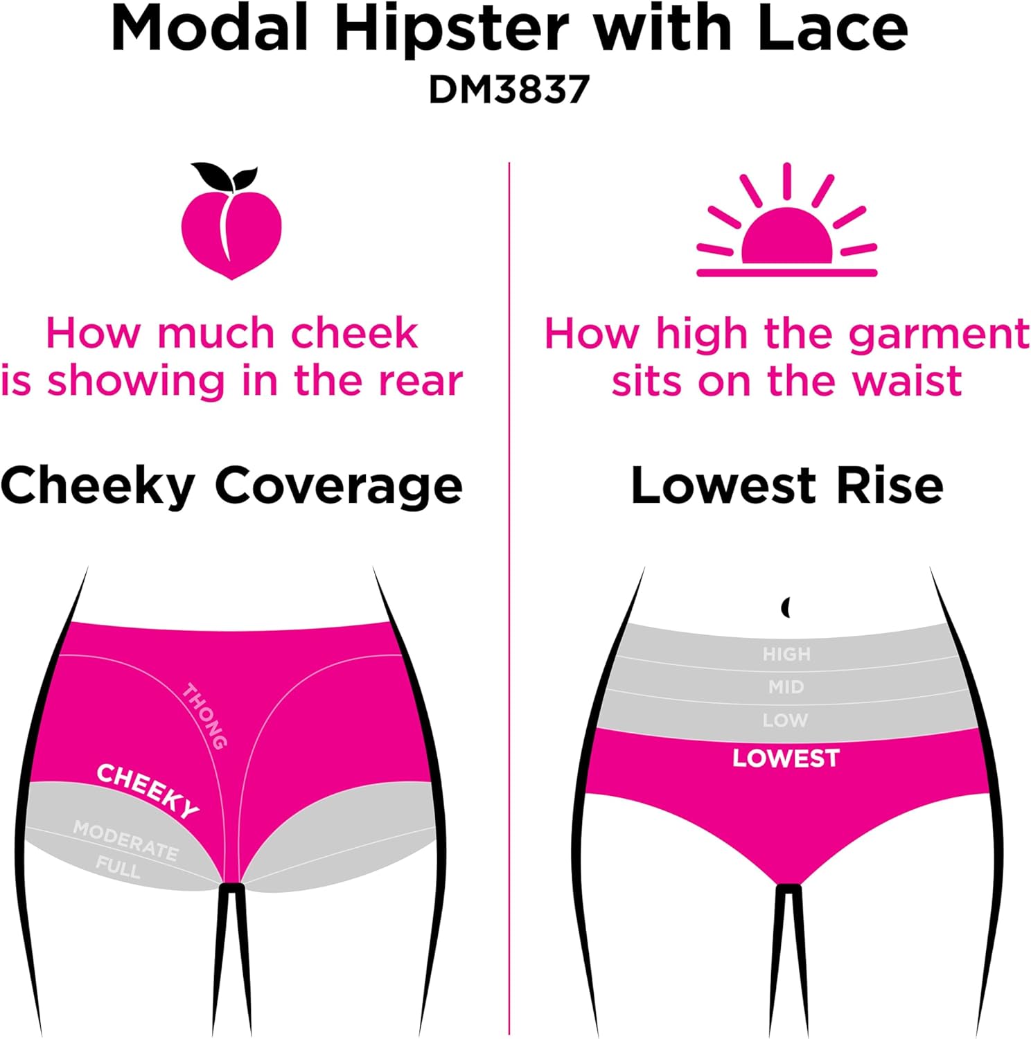 AMAZON EXCLUSIVE – Only available on Amazon. This iconic hipster underwear is a little bit cheeky and a whole lot of cute! Maidenform scalloped lace cheeky hipster brings gorgeous, sexy style – whether you’re dressing up and going out or staying in for a cozy night at home. Soft fabric gives these cheeky hipster panties a silky-smooth look that plays perfectly under skirts, leggings, or jeans. With a super-chic style and next-level comfort, our cheeky lace hipster underwear for women is sure to become your next staple. Now available in a convenient pack of three.