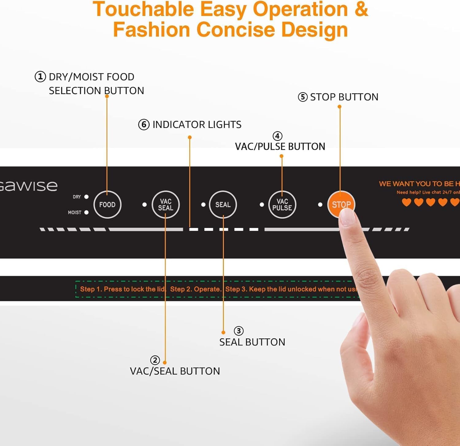 Great sealer for the price, does the job, simple and intuitive to use. The display panel includes push buttons fro selecting type of product to be sealed, thickness of bag and type of seal. We particularly like the count down and compete lights.Got an immediate response from customer service regarding sealing bags so we are very satisfied with our purchase.