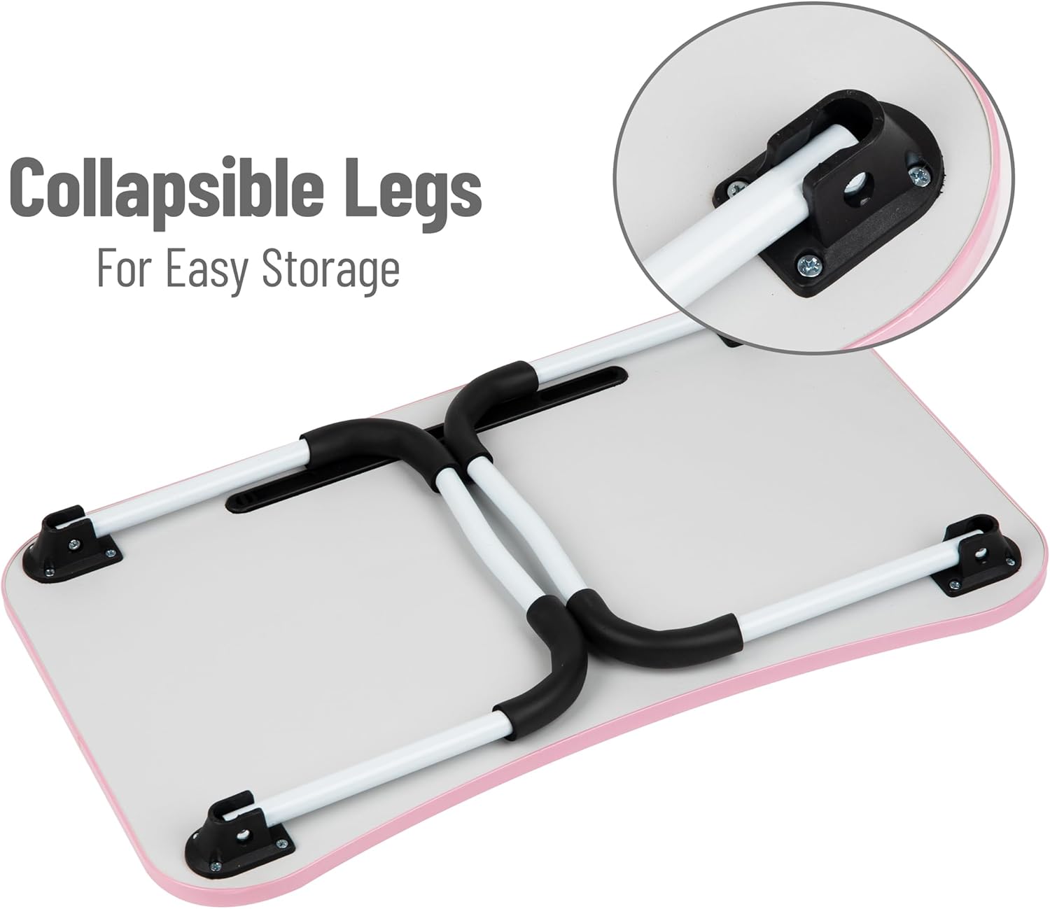 Mind Reader Lap Desk Laptop Stand, Bed Tray, Folding Legs, Couch Table, Portable, MDF, 23.25″ L x 13.75″ W x 10.5″ H, Pink