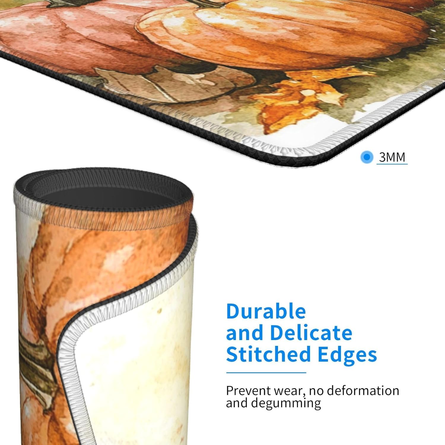 Non-slip rubber base: Fall Watercolor Pumpkins mouse mat dense shading and anti-slip rubber pad base enhance the friction, can firmly grip the desktop. Desk mat fits all types of surfaces including wood, glass, marble, metal and more. Offers a more pleasant experience while working or gaming