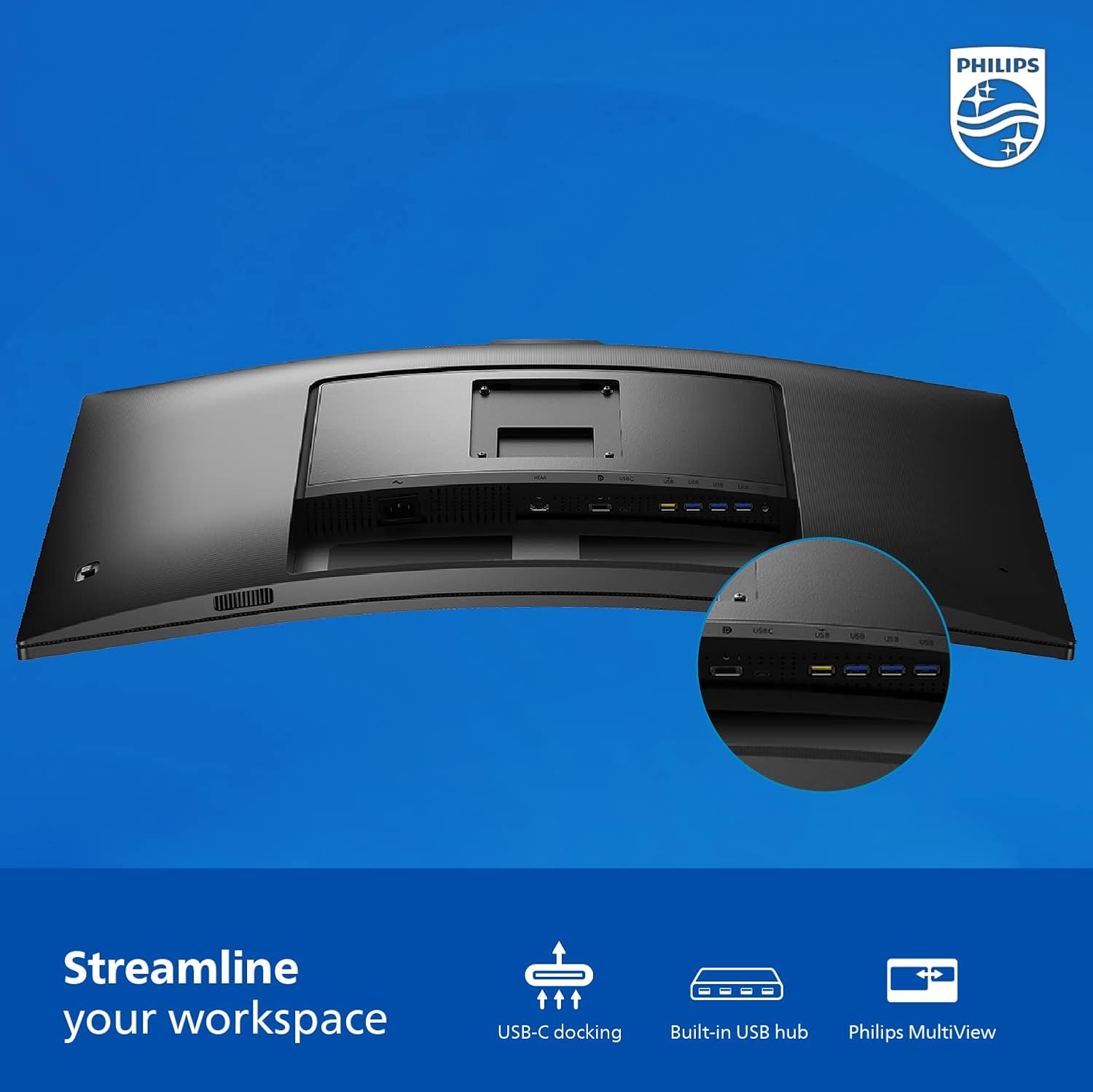 Philips 34E1C5600HE 34″ UltraWide QHD 21:9 Monitor with Built-in Windows Hello Webcam & Noise Canceling Mic, USB-C Docking, Stereo Speakers, 100Hz, 4-Year Advance Replacement,Black