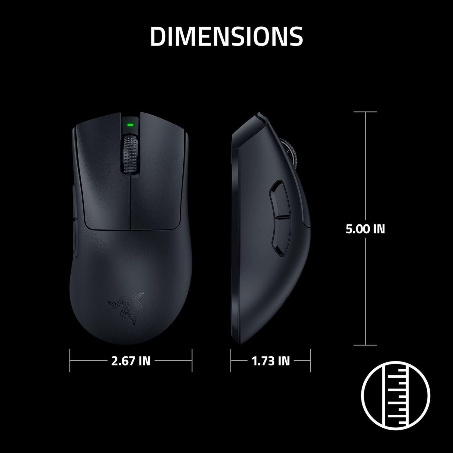 As a gamer, I’ve owned and used many different computer mice. I usually look through some of the best mice money can buy, then compare them with less expensive or no-name brands and see what the differences are. Most of the time, it’s just marketing jargons that pollutes the ad, making things seem better than they are.After some pretty extensive research, I purchased this Razer V3 Deathadder Pro and the Logitech G Pro Superlight gaming mouse – both of which stands at the very top of the food chain for gaming mice and are about the same price. Both of these mice are used by professional gamers (depending on which sponsors they’re with), and both are extremely light. They both come in white with no RGB, and they also both taunt an outrageously high DPI that literally no one uses. At a glance, both are very comparable in everyway – which I assume you know this if you’re looking to buy a mouse this expensive.The Razer V3 DA Pro has much better optimizations in the Synapse software, and while some other reviewers have had issues, my windows 10 and 11 devices all run Synapse perfectly. The mouse comes with a dongle that you can plug the wireless USB piece into, which allows for a better connection to the mouse when there is less space. Even with RF, the signal deteriorates after the first foot or so. As such, I leave my mouse and dongle fairly close to each other. The Logitech software, however, is a total mess and I find it very difficult to navigate. The software also crashes pretty often with Logitech, which has not been an issue with Razer Synapse. Neither of these mice have a DPI button on top, but both allow for customization in the software. The Razer DA V3P has a DPI button that allows you to cycle through the preset DPI options, which I’m glad they’ve put it on the bottom as I have only accidentally ever hit that on the other mice I use. The Logitech does not have a DPI button at all, but you could configure the side buttons. I use 800 DPI all around and never change it, so it does not affect me either way.I think for most people, ergonomics is what really determines the purchase but it’s hard to describe ergonomics to someone who has never held either of these mice. If you have used a Razer Deathadder V2, the previous version, you’ll find that the V3 is a completely different feel and design – for the better, at least for me. The Logitech is comfortable, but the Razer feels like an ergo mouse even though it isn’t designed as one.Razer’s advertising for this mouse is a little misleading. The mouse has a standard polling rate of 1k hz, but with a 40 dollar adapter, you can get a 4k hz polling rate. This is not an option at all with Logitech, as the mouse only has the 1k hz polling rate with no upgrades.Both mice have great skates to help with sliding, and in combination with the super lightweight, it feels even lighter than it is. I did weigh both mice and found that the G Pro is about 5 grams lighter – this is not detectable by my hands when I’m using it.If battery life is important to you, I find both mouse lasts for quite some time even though I’m constantly using them. Razer advertises a slightly longer battery life, and I find that to be mostly true. What Razer doesn’t advertise is their charging speeds, as it is in fact much faster than Logitech. You can use either mouse while it’s plugged in when they are charging.If you’re getting the white variant of either mice, just know that the tape/grip comes only in black.