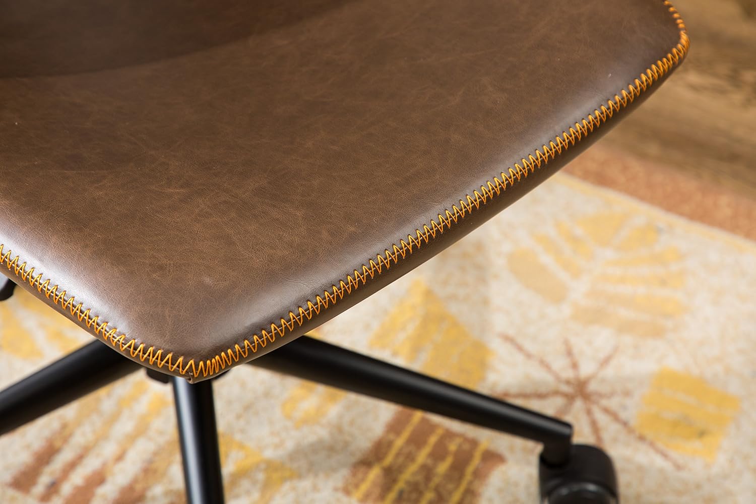 The durable Matte Black Steel frame with 5 casters and the Antique brown faux Leather Seat made this chair a perfect combination of Functional and stylish.
