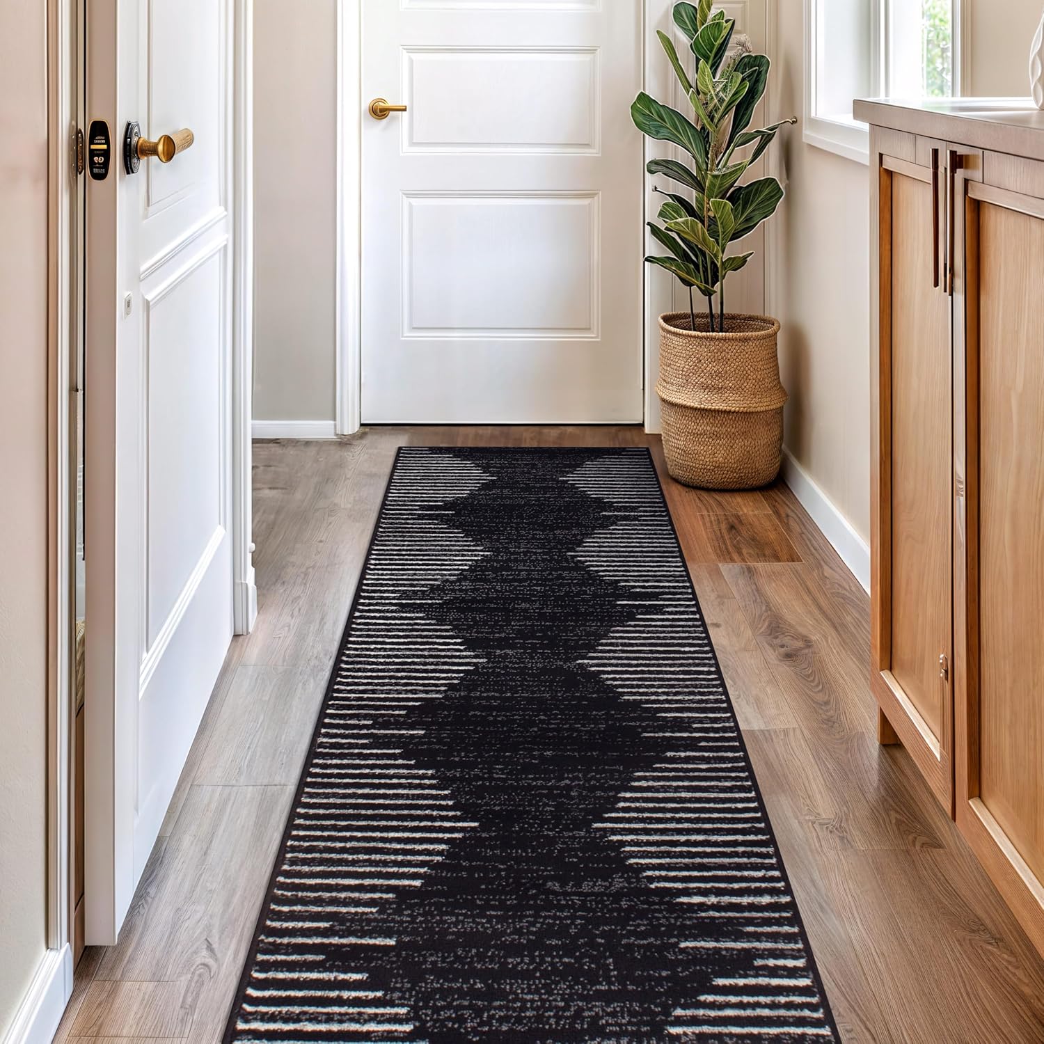 Rugshop Bohemian Stripe Stain Resistant High Traffic Living Room Kitchen Bedroom Dining Home Office Runner Rug 2’7″ x 12′ Black