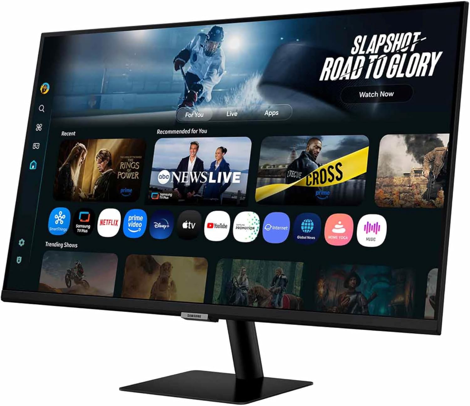 ¹Features, services and app availability may vary by country and region. Samsung TV Plus and Universal Guide may not be available in some regions. Some features may require separate subscriptions. The user interface is subject to change without notice. This Smart Monitor does not include a TV tuner, which is not necessary for streaming apps. Internet connection is required. Remote control specifications vary by country and region. Keyboard and mouse control compatibility varies by app. Access to the full range of smart features, such as network-based services, applications (including games and streaming services), and smart home functionality, requires a Samsung Account. Without logging in, functionality is limited to external devices, e.g. via HDMI. You can sign up for a free Samsung Account at Terms and conditions apply. ²
