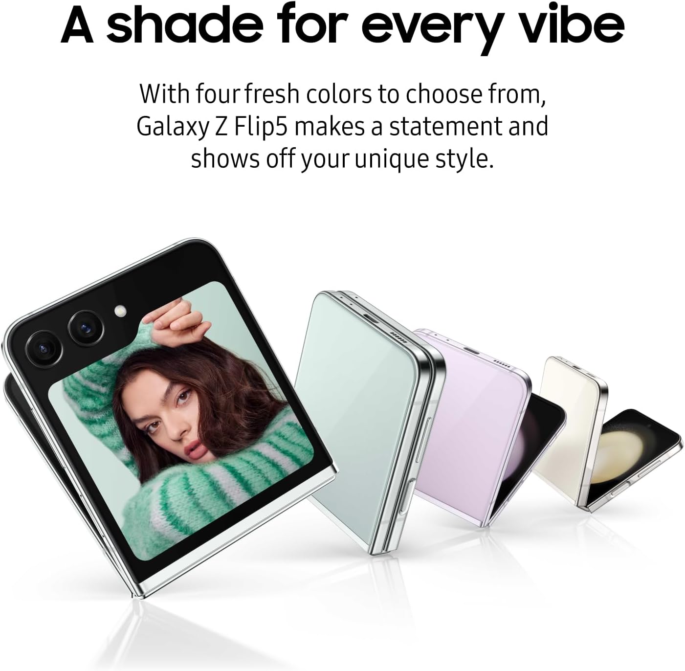 Meet the phone that’s tiny, trendy and totally flex-worthy. With a full cover screen, you can reply to texts, preview photos and access even more widgets than before with your Galaxy Z Flip5 folded shut. And with Flex Mode, you can capture hands-free selfies and videos from any angle. A compact, durable design makes this pocket-sized phone perfect for life on the go. Plus, personalize your phone from the outside in with a customizable cover screen and four stylish colors to show off your style. Flex a phone as bold as you are with Galaxy Z Flip5. 256GB