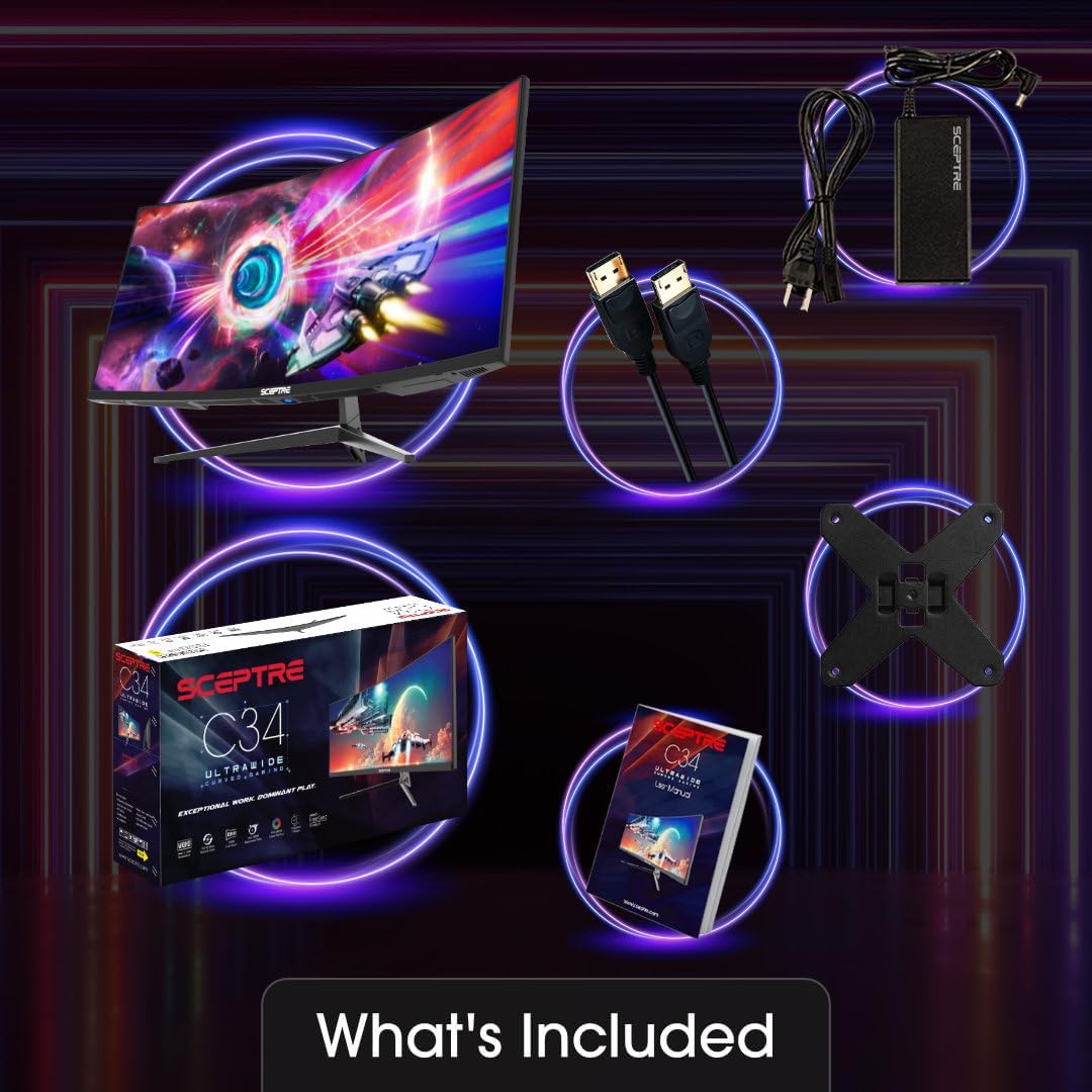 I purchased the Sceptre 34-Inch Curved Ultrawide Monitor to enhance my workspace for both gaming and productivity, and it has mostly delivered with good quality. The 1ms MPRT response time ensures colors are vibrant and movements are smooth, which really helps during fast-paced scenes. The ultrawide 21:9 aspect ratio gives me plenty of screen real estate, making multitasking much easier compared to my old 1080p monitor. The 3440 x 1440 WQHD resolution offers sharp and detailed visuals, and I appreciate the 99% sRGB coverage for color accuracy in photo editing.One standout feature is the luminous backcover LED lighting, which adds a cool, modern touch to my setup. The built-in speakers are decent and convenient when I don’t want to plug in headphones, although I wish the volume could be a bit louder.