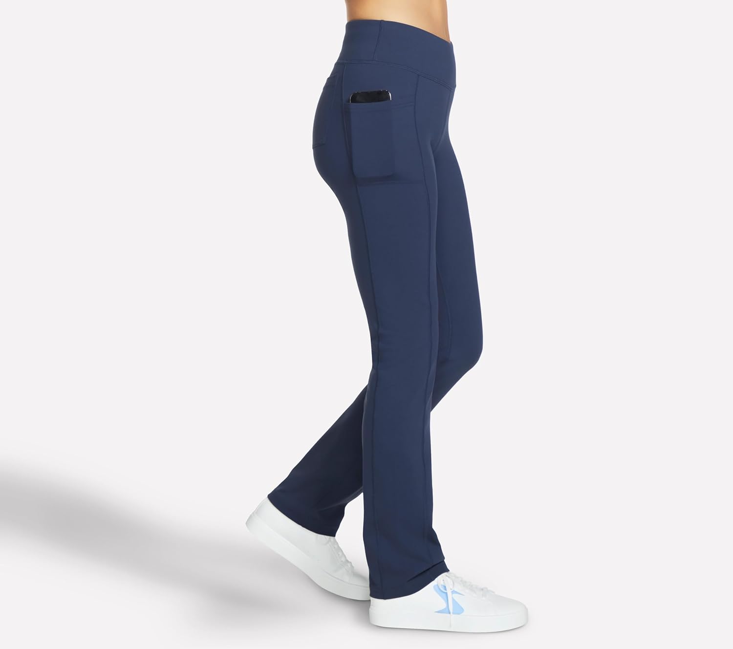 Stay active throughout the day in flexible comfort with the Skechers GO WALK OG Pant Regular Length. These women shoes feature a GO FLEX moisture-wicking nylon and spandex blend fabric with chafe-free seams for total comfort. The midrise pant has exterior side pockets, back pockets, a self-gusset, and semi-flare hem for unrestricted movement.