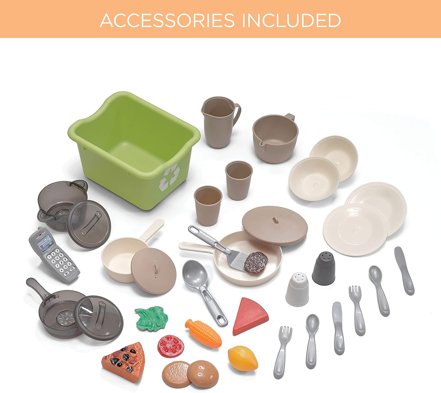 Step2 Lifestyle Dream Kids Kitchen Playset, Indoor/Outdoor Kitchenette, Interactive Play with Lights and Sounds, Made of Durable Plastic, 37 Piece Toy Accessories, Toddlers 2+ Years Old, Gray