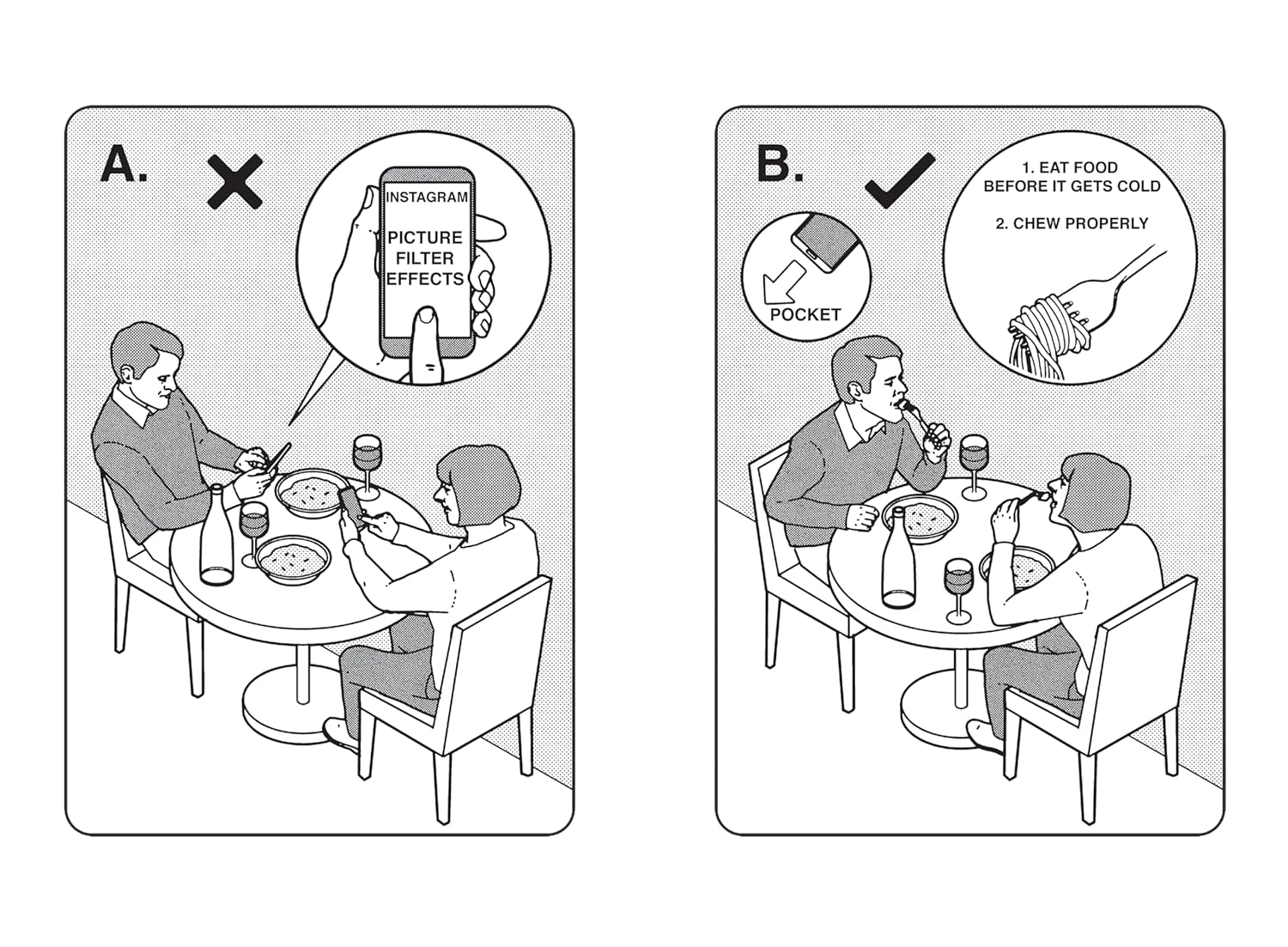 In an age when we’d rather Instagram our food than eat it, this cheeky, illustrated instruction manual humorously demonstrates how to remove our eyes from our phones and reconnect with the real world.