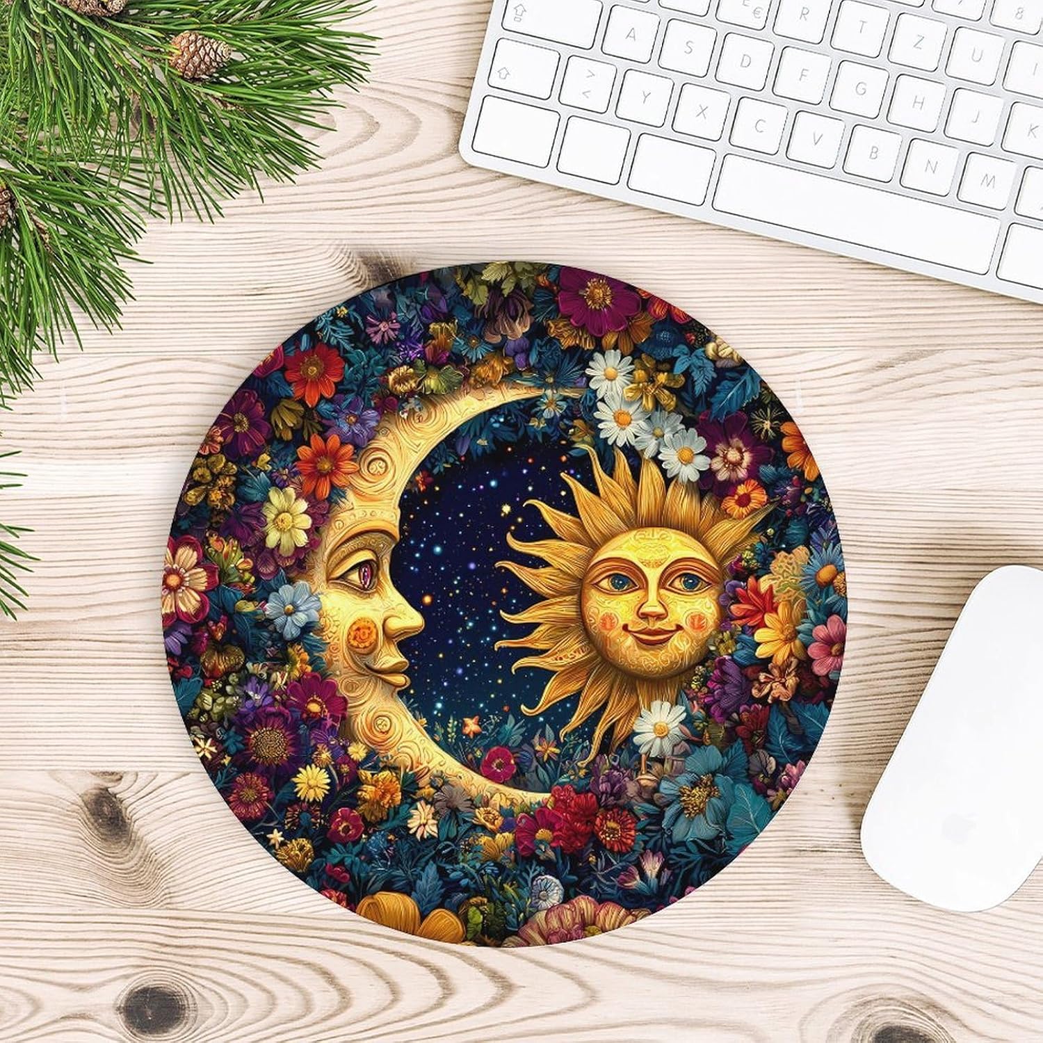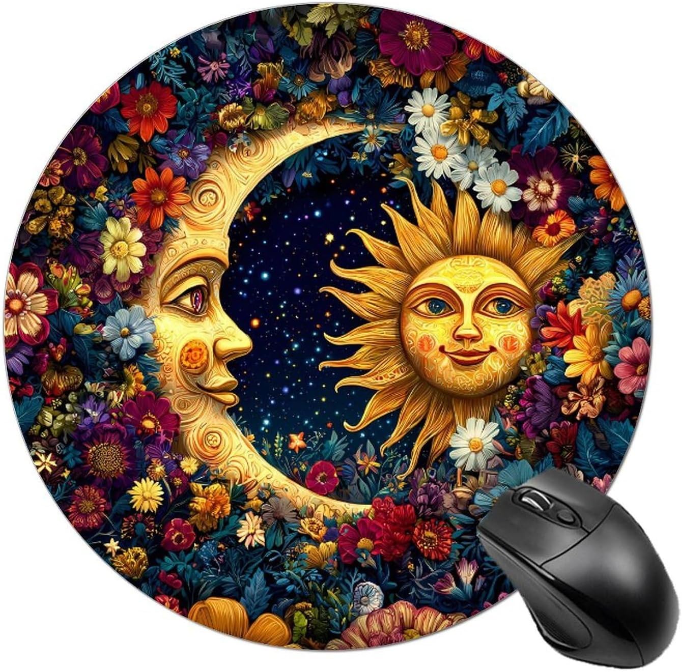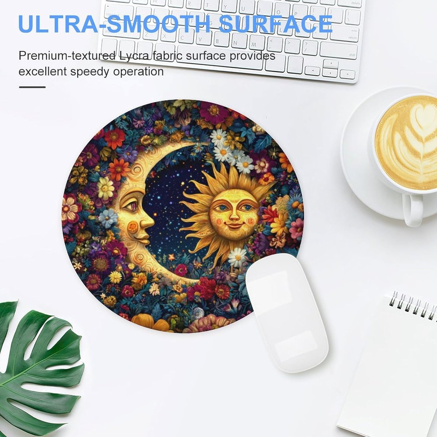 Sun and Moon Round Mouse Pad Comfortable Mousepad Desk Mat for Computer Laptop