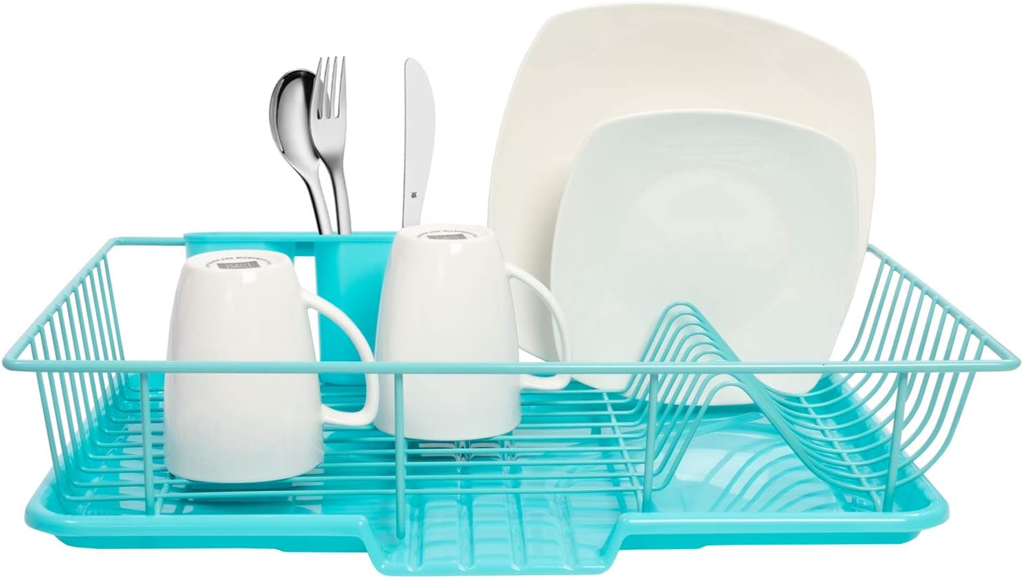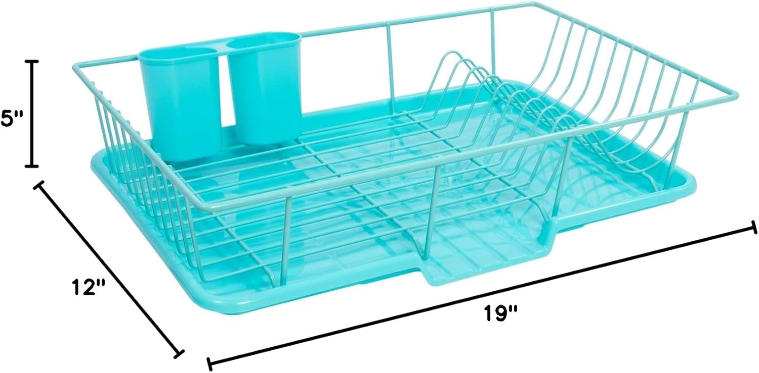 Sweet Home Collection Dish Rack Drainer 3 Piece Set with Drying Board and Utensil Holder, 5″D x 12″W x 17″H, Turquoise