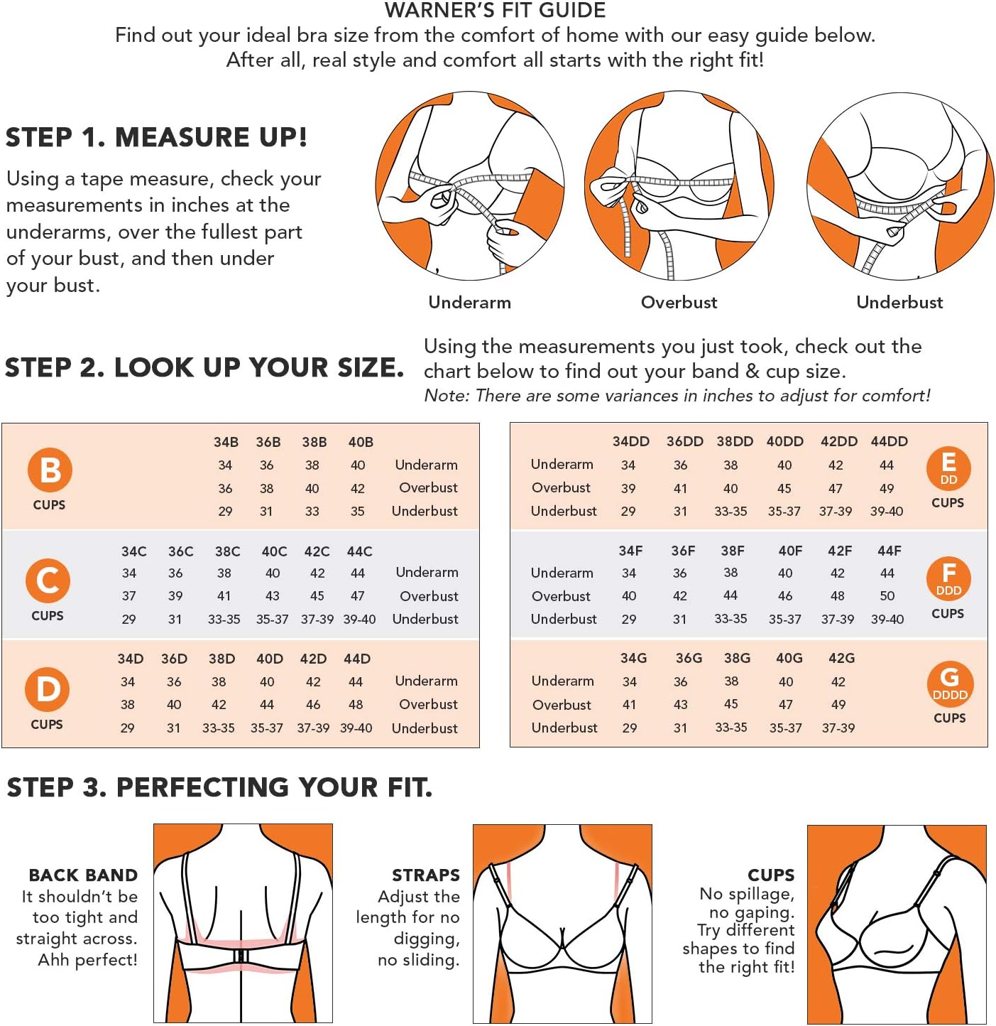 Warner’s Women’s Elements Of Bliss Lift Wire-Free Bra #1298,Black,34D I saw this in the department stores and it was beautiful and tried it on in a size close to mine, a 34C (as they don’t make a 32DD) and it was too small in the cups. So I get home, see it on Amazon and was so excited! Comfort & health! And then my dreams were shattered, not once but twice. I received the 1st bra and it had ridges on ONE cup that you could see through a shirt. It fit well, so I knew that wasn’t the problem. I tried massage the material to see if the ridges would go away, but to no avail. So I ordered it again. Much to my dismay, this bra had ridges on BOTH cups. I have been to 4 stores and looked at the bra and know that they don’t have this disfigurement. I worked at two of the stores where I looked for the bra (same chain, different locations), and I know that they received large shipments of poorly packaged items, but all 50+ of the same bras where perfect. Amazon packed it well, so that couldn’t be it. Could it be irregular? Well, I tried it twice, won’t again. It’s hard enough to find my size, but to find one that works in lieu of and is comfortable and gives you the lift without cancer-causing underwire is well, a miracle. So not being dramatic, but I wanted THIS bra, obviously very badly. I wouldn’t buy this particular one in black. Maybe the fabric is different on the other ones. Either way, if anyone has any suggestions for a 32DD/34D with no underwire & a lift, let me know. Until then, sports bras that make me look and feel, well, unlifted. Good luck and happy purchasing! Sidenote: Amazon customer service was so nice in my returns. They already credited the account before receiving the product. They rock.